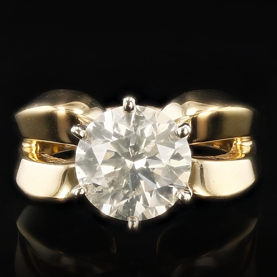 One polished, and tested, 14K yellow and white gold ring with a bright finish. The ring is mounted with one genuine EGL certified diamond weighing 3.02 carat. This item weighs 8.9 grams, condition is new, excellent workmanship. #MAIN GEMSTONE# EGL Report