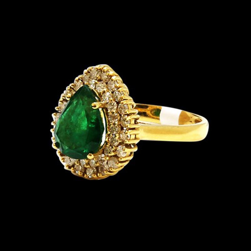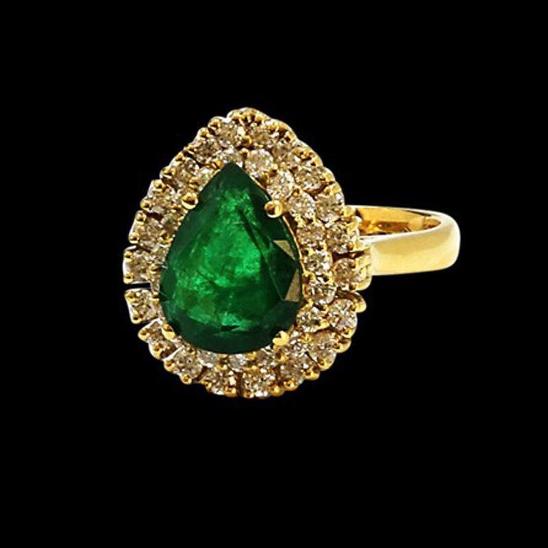 14K YELLOW GOLD NATURAL COLUMBIAN EMERALD RING:6.58 GRAMS/DIAMOND:0.84CT/EMERALD:3.02CT/#GVR1112