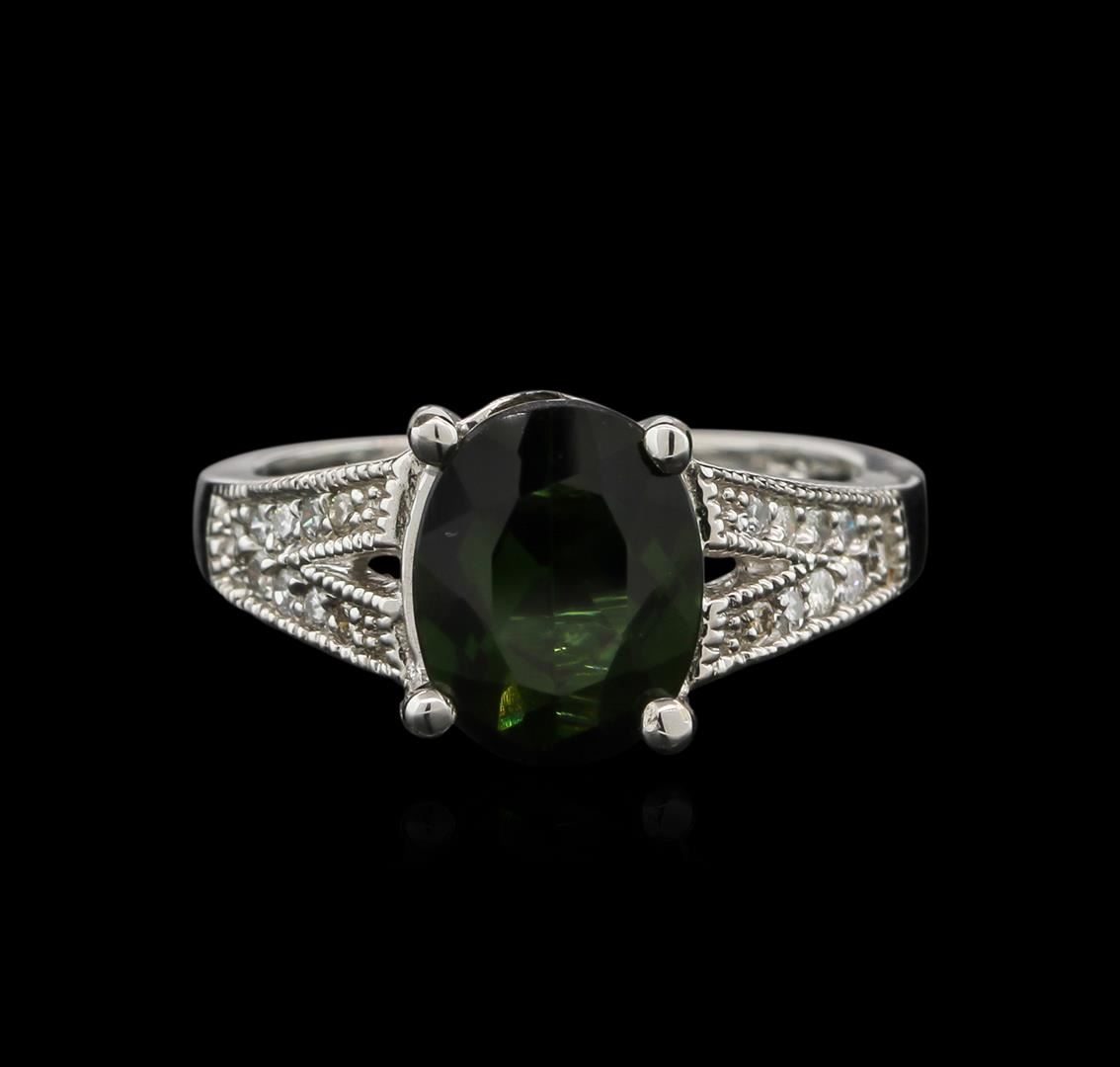 One ring featuring: 14KT white gold weighing 4.99 grams containing one green tourmaline center stone with a total weight of 3.02ct and diamonds with a total weight of 0.19ct.