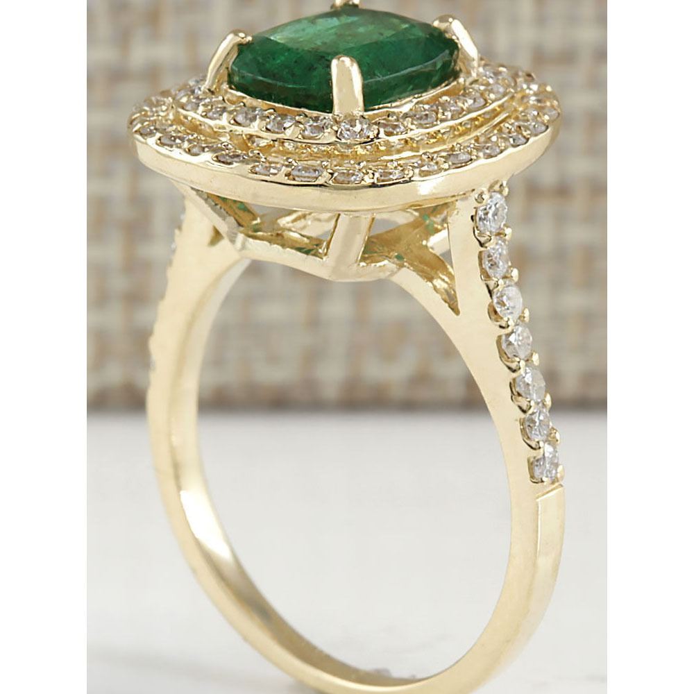 3.03 CTW Natural Emerald And Diamond Ring 14K Solid Yellow Gold