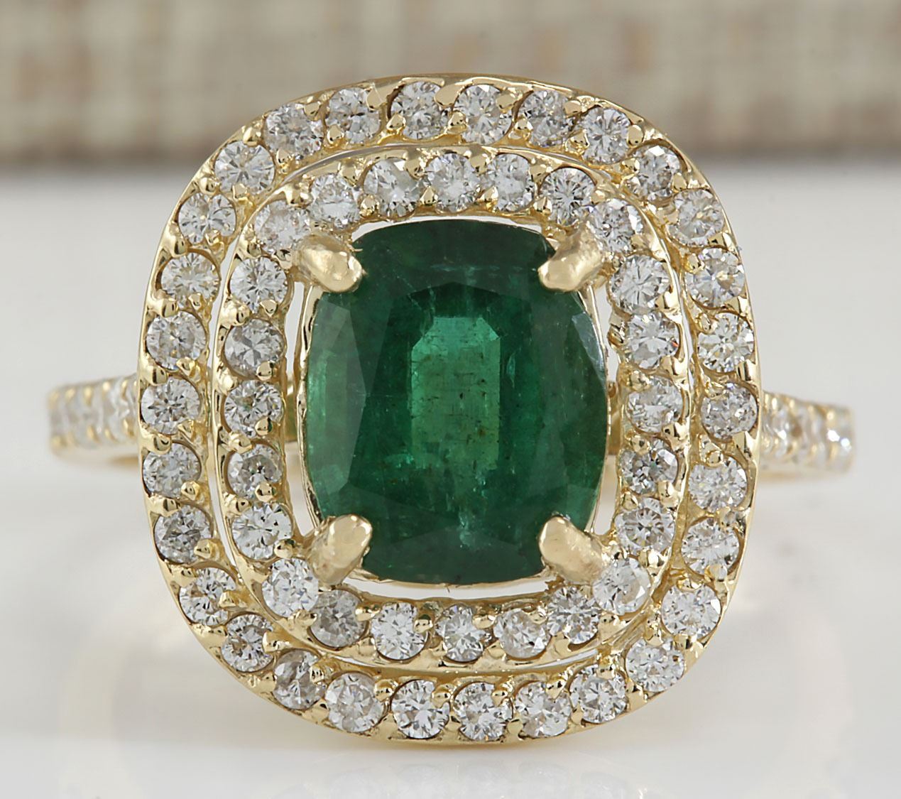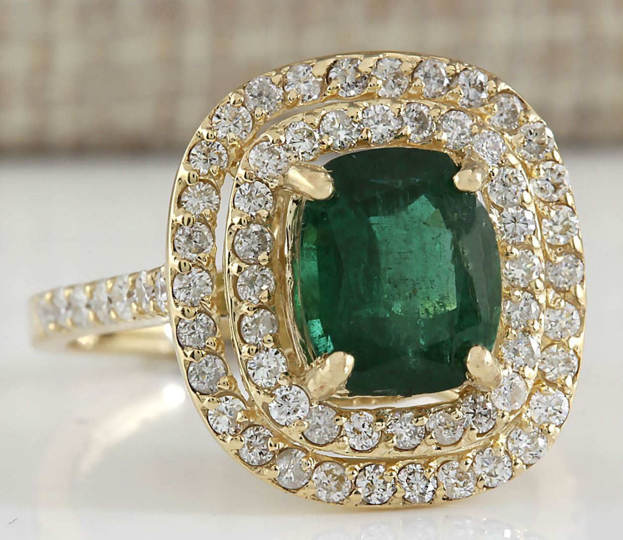 3.03 CTW Natural Emerald And Diamond Ring 18K Solid Yellow Gold