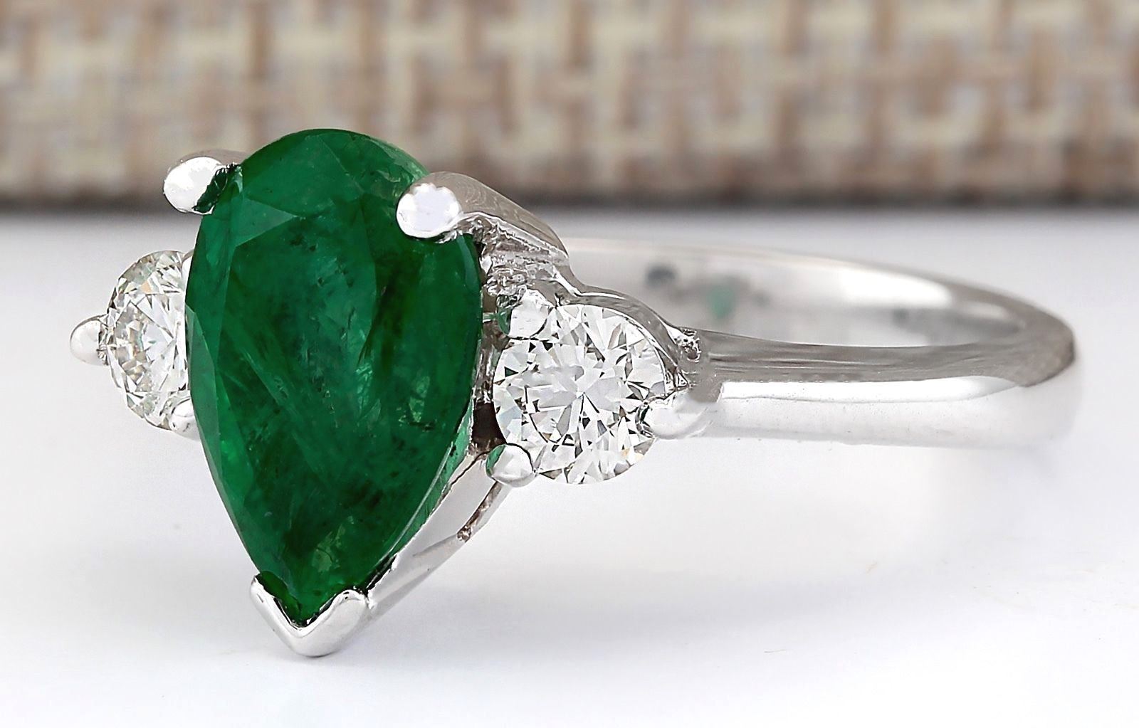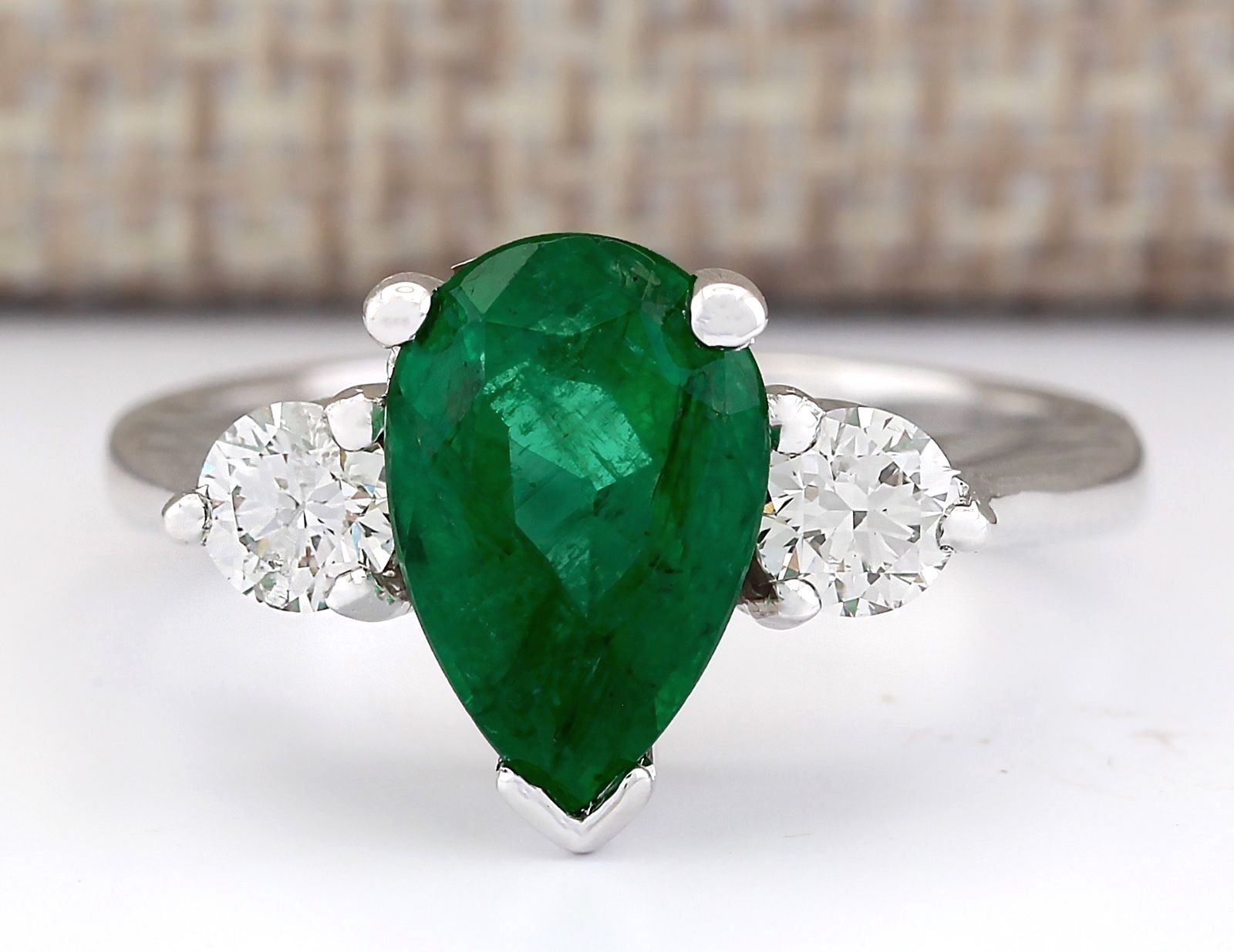 3.03 CTW Natural Emerald And Diamond Ring In 14k White Gold