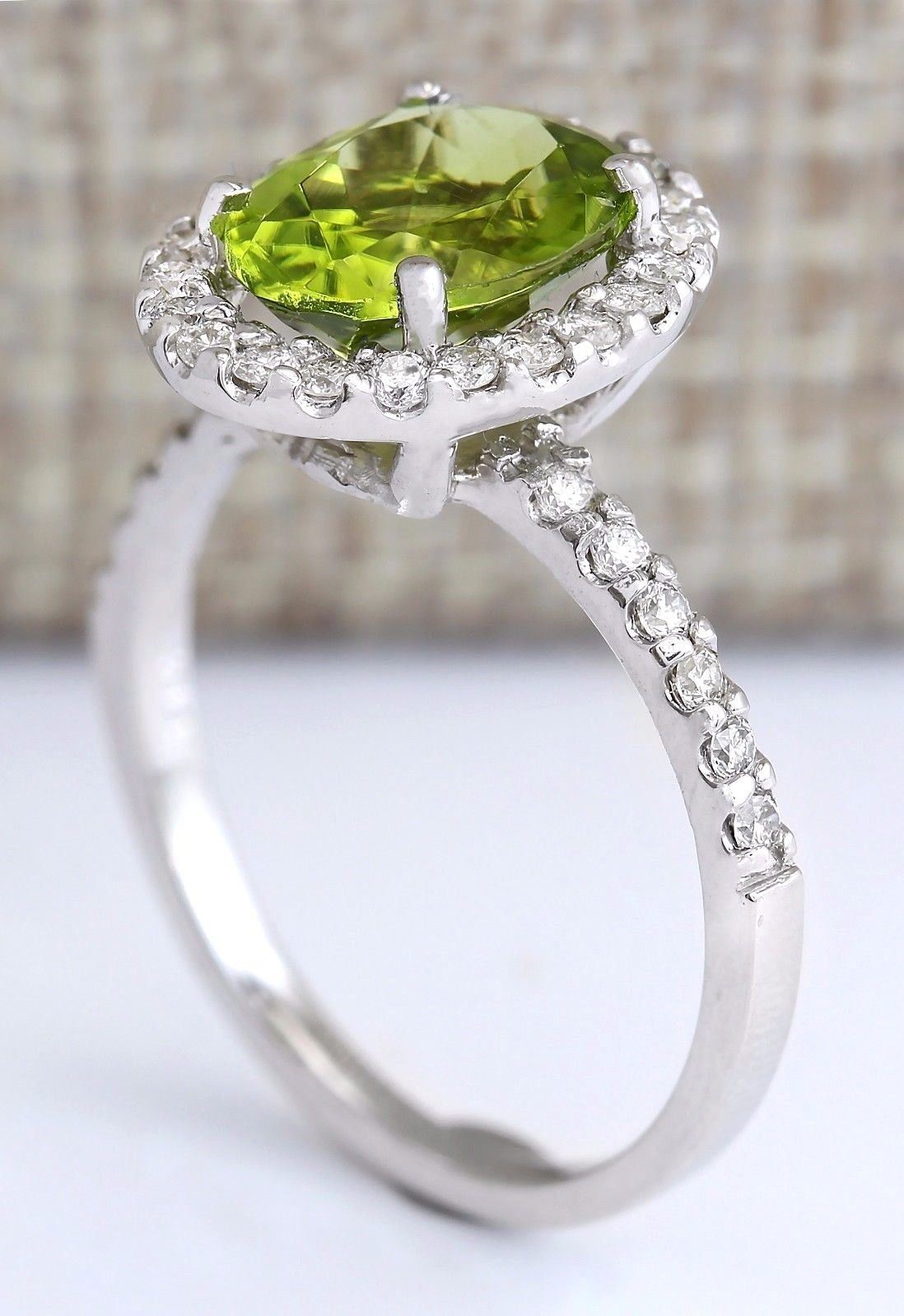 3.03 CTW Natural Peridot And Diamond Ring In 14k White Gold