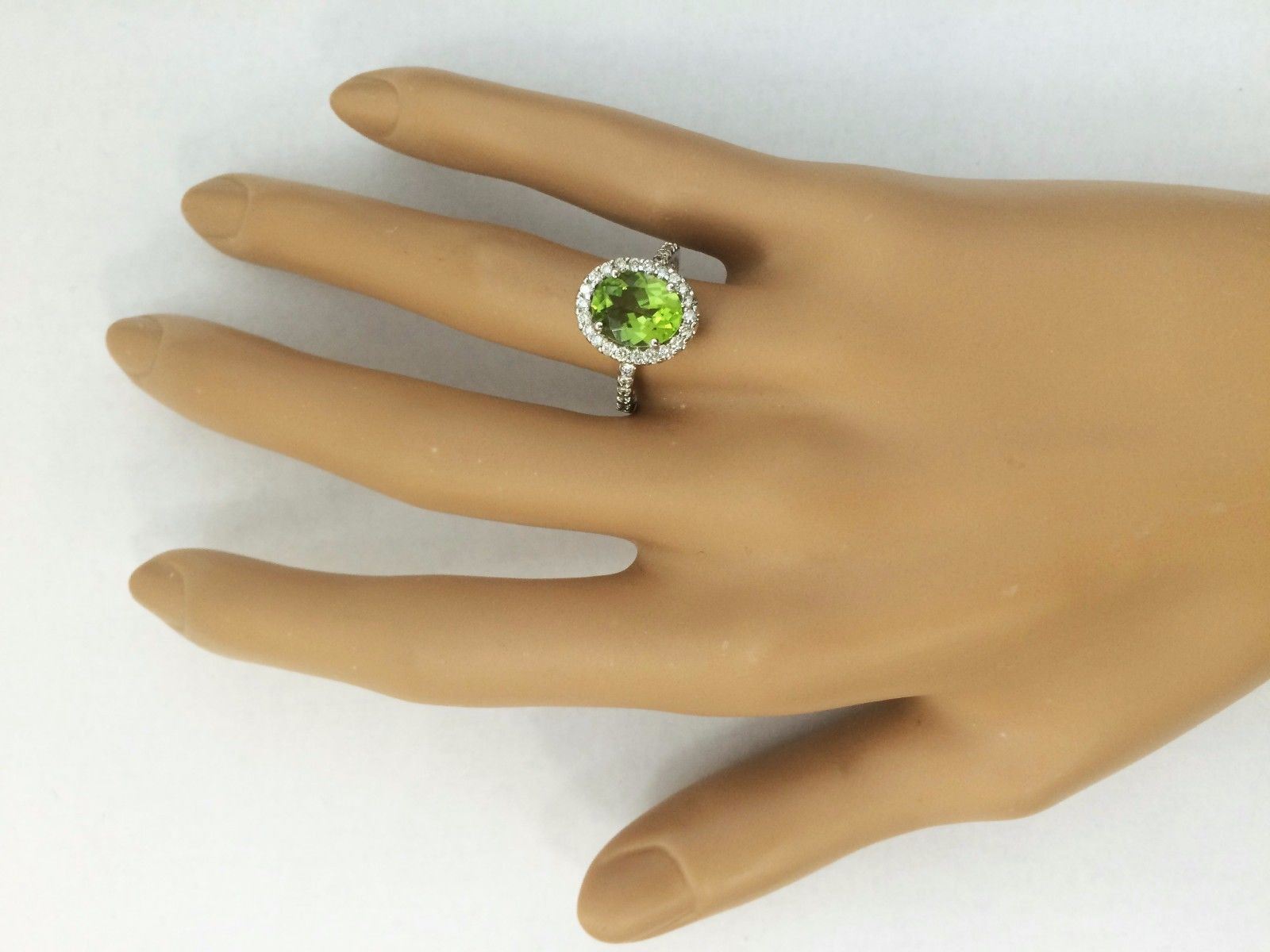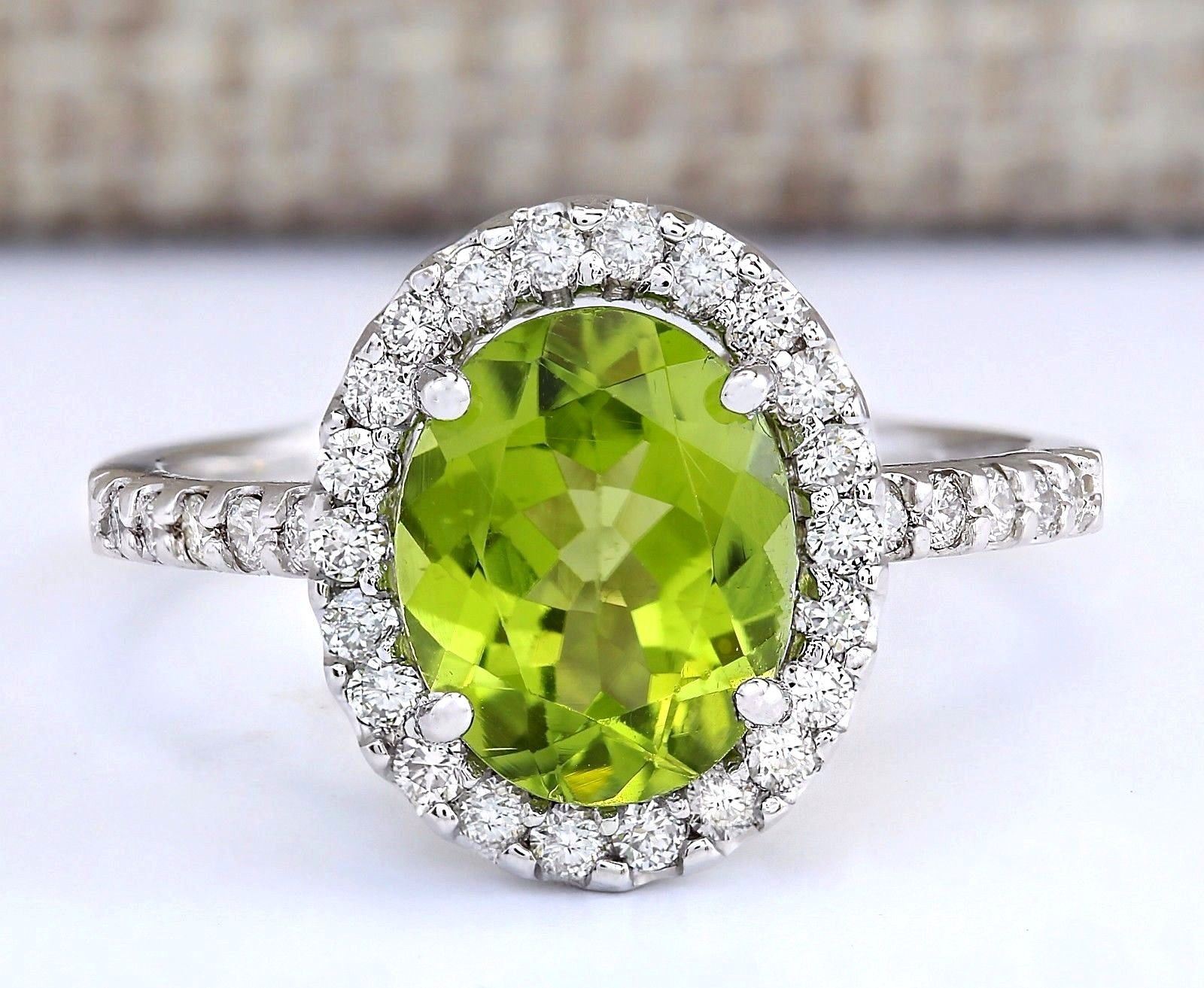 3.03 CTW Natural Peridot And Diamond Ring In 18K White Gold