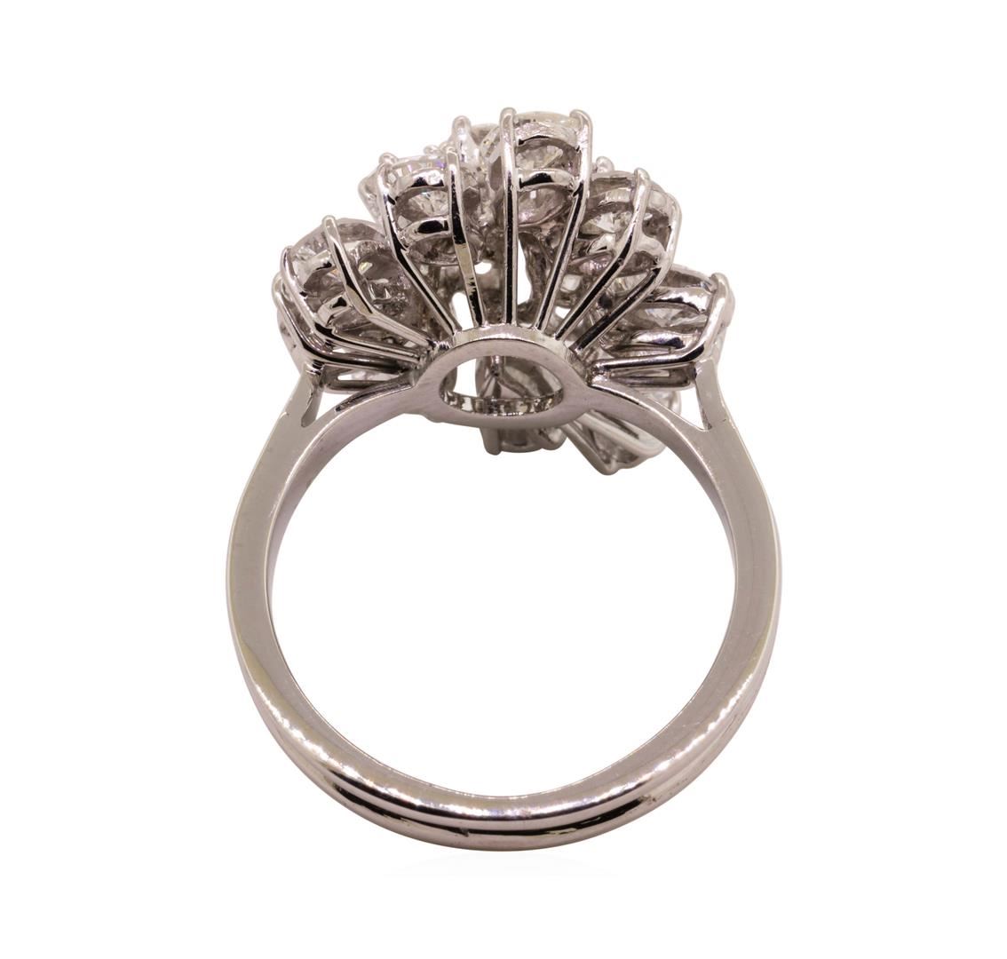 One electronically tested 18KT white gold lady's cast fashion ring with a waterfall cluster motif with a bright polish finish. The featured lady's ring has a shank measuring 2.70 millimeters wide. Identified with markings of '750'. Condition is like new, good workmanship. Containing: Twelve prong set pear shaped cut diamonds, measuring 5.40 x 3.30 x 2.08mm (depth est.) approximate total weight of 12 Stones = 2.62ct. Graded in the setting. Color G - H Clarity VS-1 to SI-1 Cut Good Four prong set round brilliant cut diamonds, measuring 3.10 - 3.00 x 1.83mm (depth est.) approximate total weight of 4 Stones = 0.41ct. Graded in the setting. Color G - H Clarity VS-2 to SI-1 Cut Very Good. Total Weight of Diamonds 3.03ct.. Total Weight of Ring 5.70gm GAS Appraised at  $9080.00. GAS Appraised at $9,080.00.