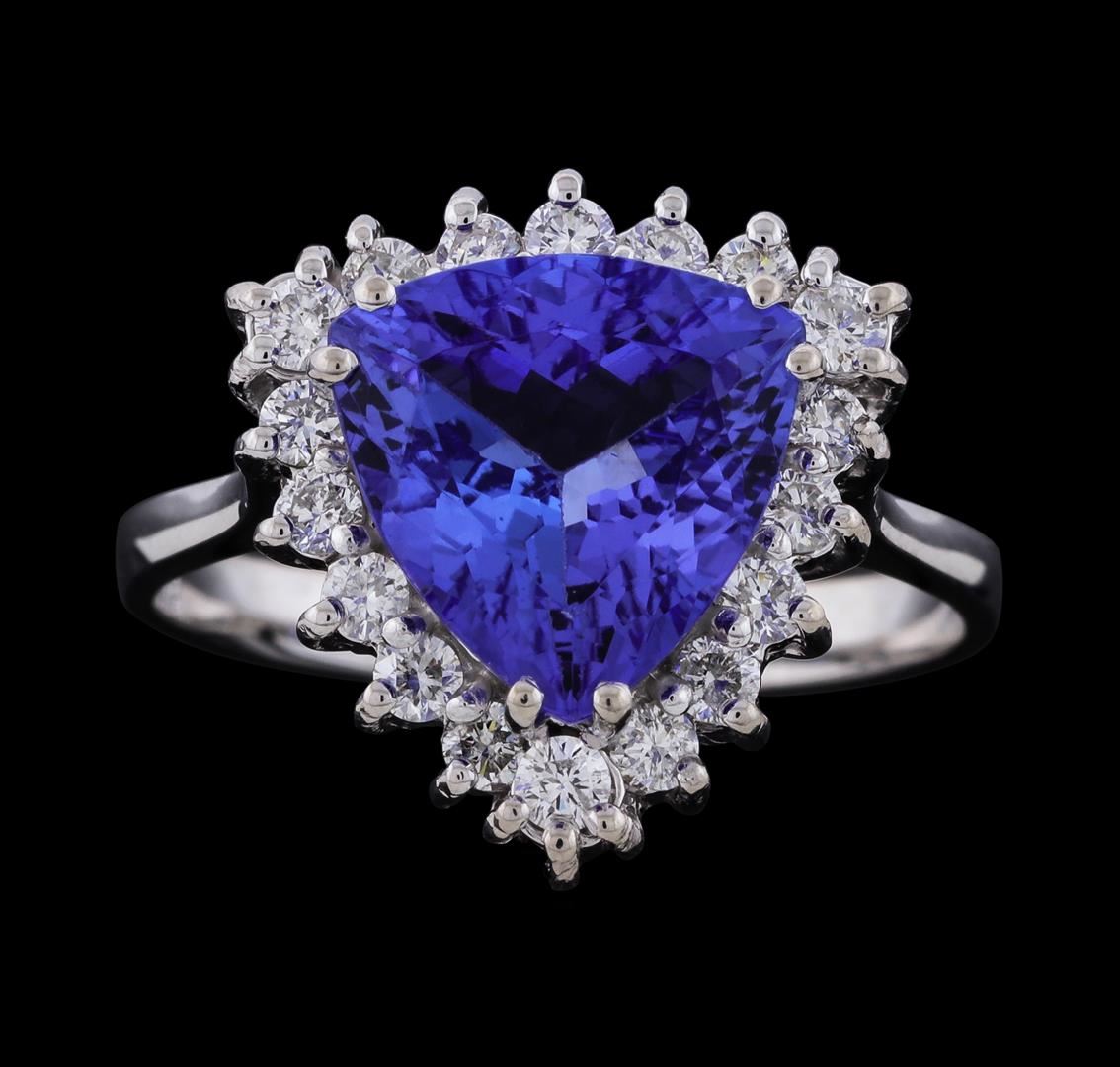 One ring : 14KT white gold weighing 4.70gm featuring tanzanite with a total weight of 3.03ct and diamonds weighing 0.47ctw.