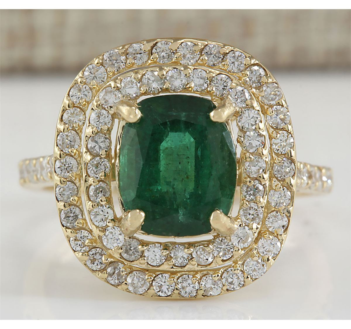 Stamped: 14K Ring Size: 6.75 Total Ring Weight: 5.2 Grams Diamond Weight: Total natural diamond weight is 1.00carat. SI1-SI2 clarity / G-H color Gemstone Weight: Total Natural Emerald Weight is 2.03ctw (Measures: 8.65x7.14mm) High End Gemstone! Face Measures: 16.11x15.04mm Main stone color: Green [SKU:702173]