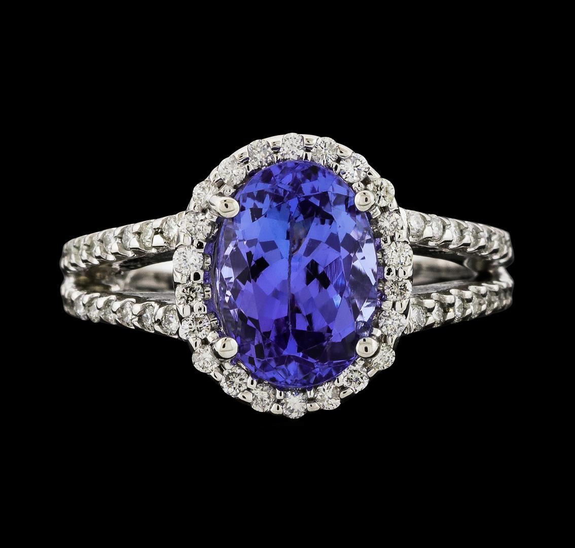 One Tanzanite and Diamond Ring featuring: 14KT White Gold with a total weight of 6.28 grams, Tanzanite with a total weight of 3.04ct, and 62 diamonds with a total weight of 0.52ctw.