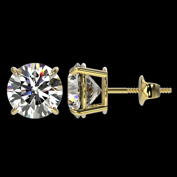 REF-645A2X -36693 ---- 3.05 CTW Certified H-I Quality Diamond Solitaire Stud Earrings 10K Yellow Gold ---- Luxury Designer Brand Earring Appraised at $43,000 Certificate Number US36693  10k Yellow gold,  Earring Size is Larger, Earring measuring approx. Uniform, weighing in total approx. 2.5 grams. Made in the USA and is stamped 10k, Main stone 3.05 carat total weight containing 2 pieces of H-I color with I quality Round shape cut Diamond , Stone #2  carat total weight containing  pieces of  color with quality  shape cut