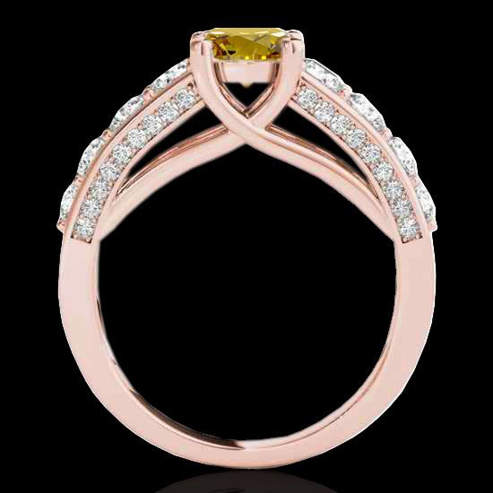 3.05 CTW Certified Si Fancy Intense Yellow Diamond Solitaire Ring 10K Rose Gold ---- Luxury Designer Brand Ring Appraised Retail Price at $20,800 ---- SKU Number US35524 10k Rose gold Ring Size is 7, Ring measuring approx. Uniform, weighing in total approx. 5.7 grams. Made in the USA and is stamped 10k, Main stone 1.50 carat total weight containing 1 pieces of Intense Fancy Yellow color with SI quality Round shape cut Diamond , Stone #2 1.55 carat total weight containing 44 pieces of H-I color with VS/SI quality Round shape cut