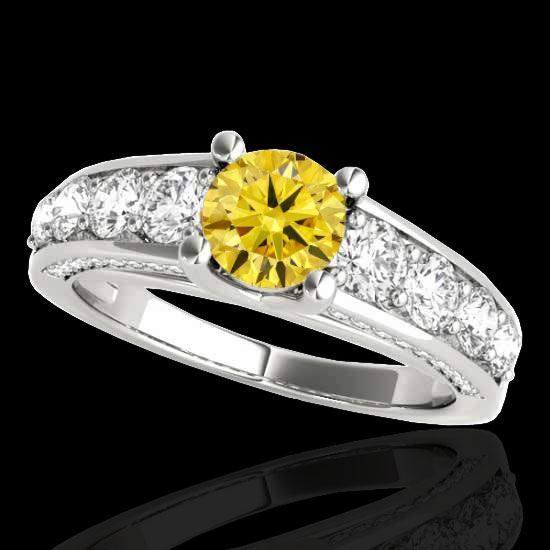 REF-343N6Y -35523 ---- 3.05 CTW Certified Si/I Fancy Intense Yellow Diamond Solitaire Ring 10K White Gold ---- Luxury Designer Brand Ring Appraised at $20,800 Certificate Number US35523 10k White gold, Ring Size is 7, Ring measuring approx. Uniform, weighing in total approx. 5.7 grams. Made in the USA and is stamped 10k, Main stone 1.5 carat total weight containing 1 pieces of Intense Fancy Yellow color with SI quality Round shape cut Diamond , Stone #2 1.55 carat total weight containing 44 pieces of H-I color with VS/SI quality Round shape cut Diamond