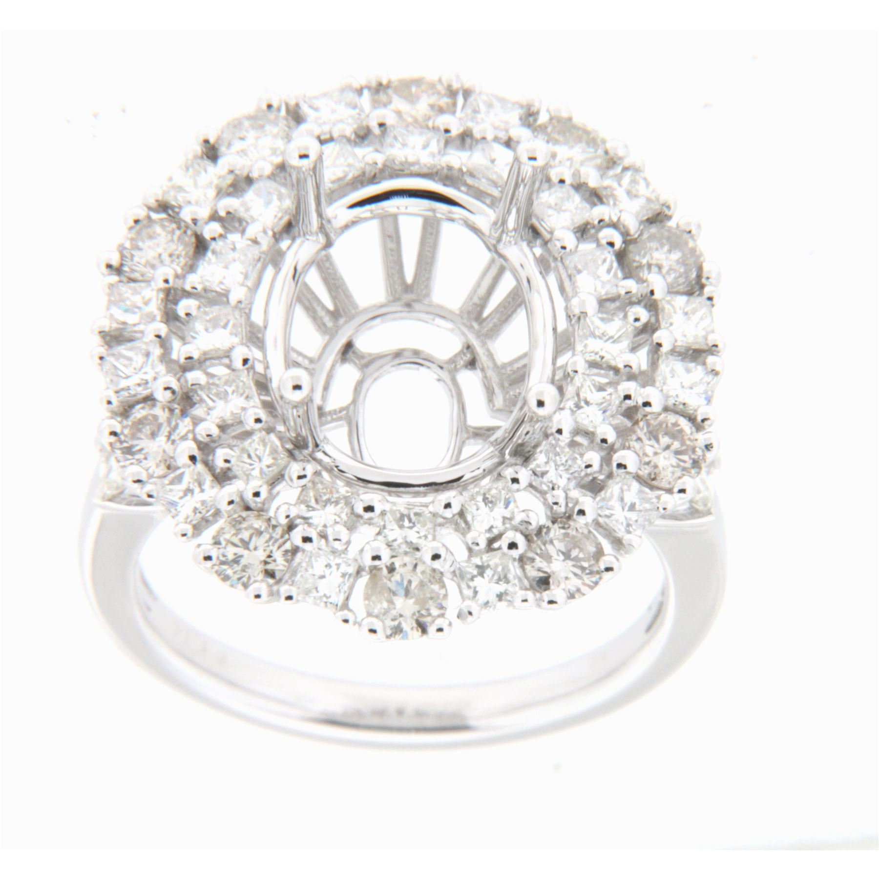 REF-334N6Y - JF401550 ---- 3.05 CTW White Round Diamond & Princess Diamond Semi Mount Ring 18K White Gold