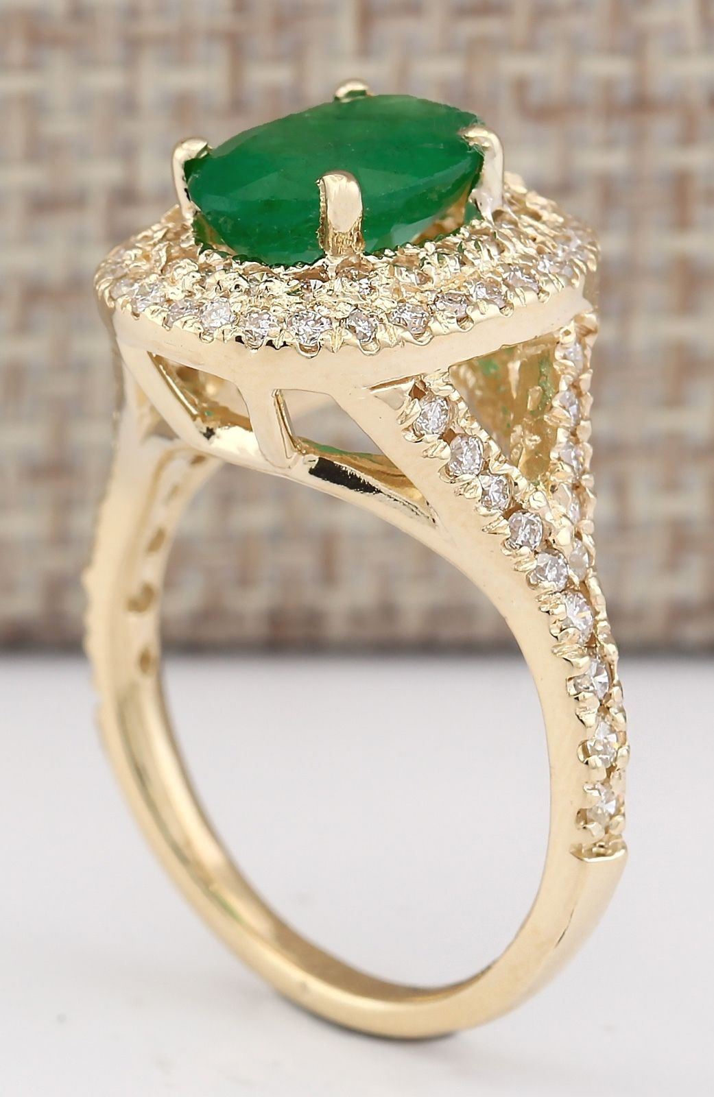3.05 CTW Natural Emerald And Diamond Ring In 14k Yellow Gold