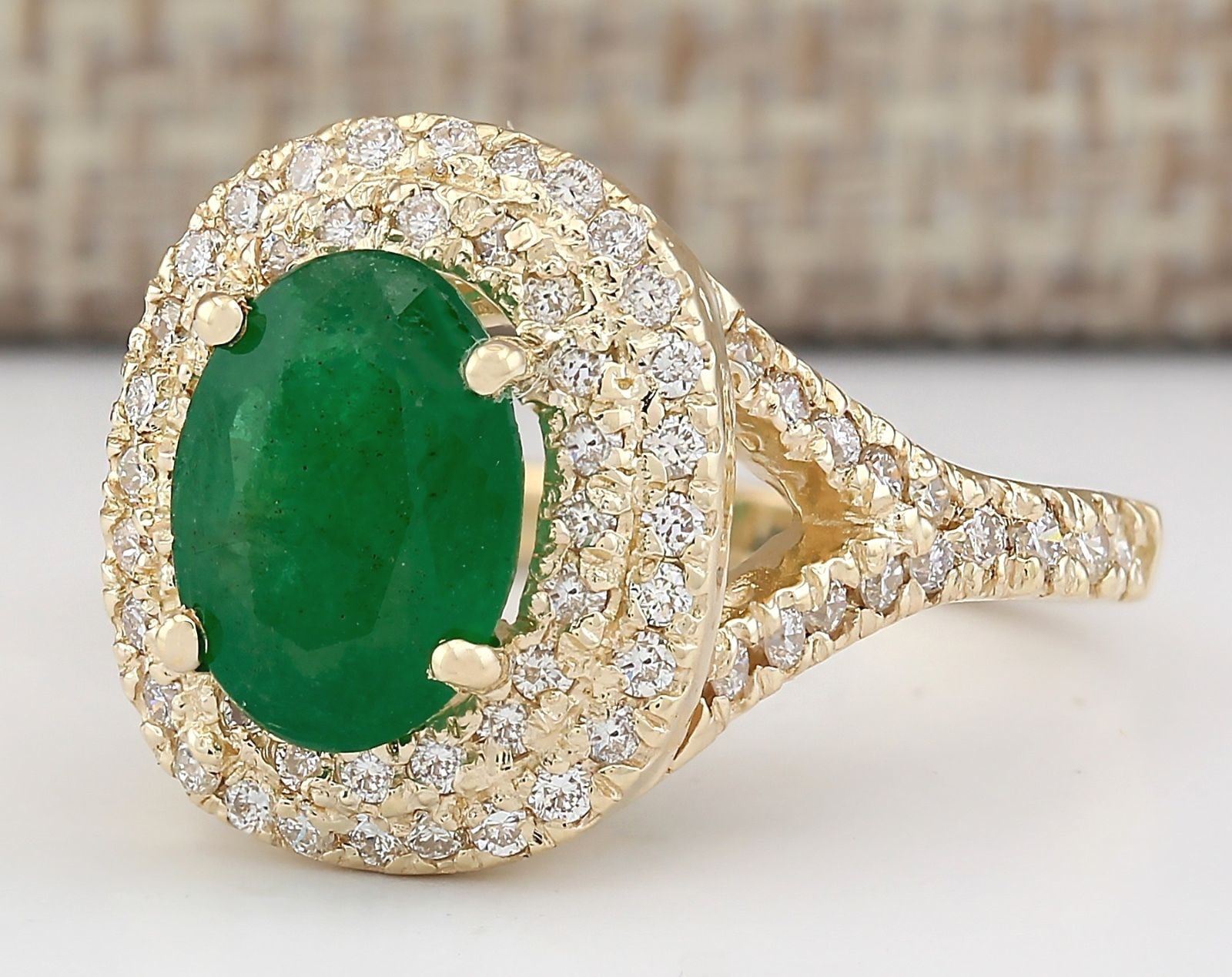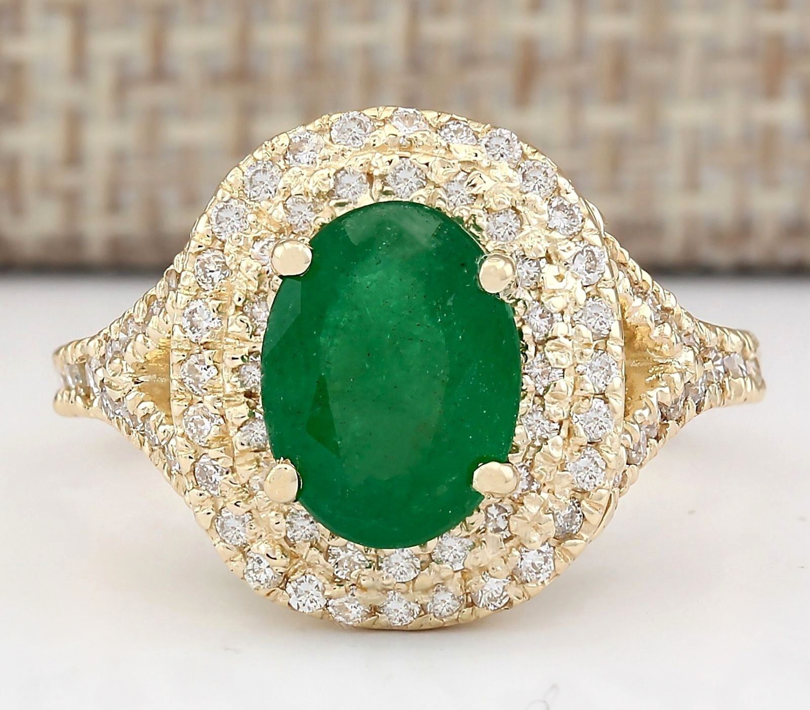 3.05 CTW Natural Emerald And Diamond Ring In 18K Yellow Gold