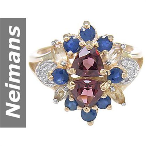 3.05 ct Citrine, Red Spinel & Sapphire & Diamond Ring 14kt Gold