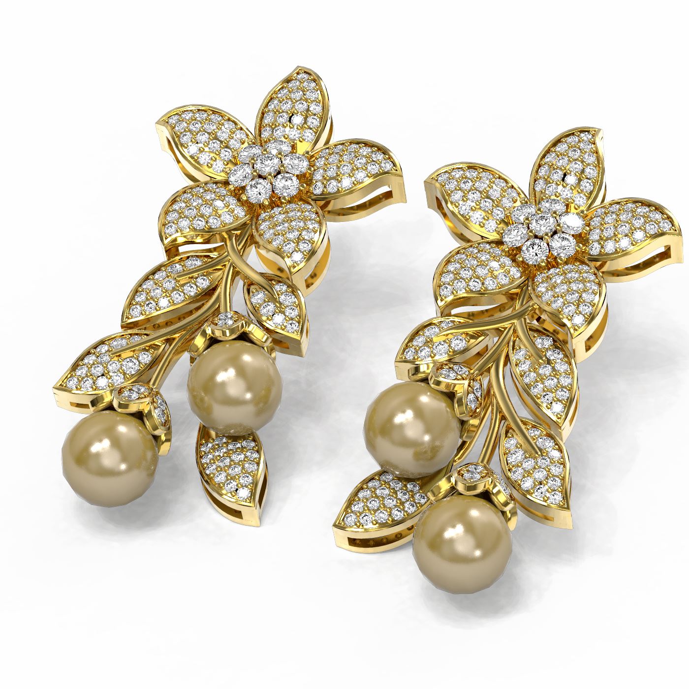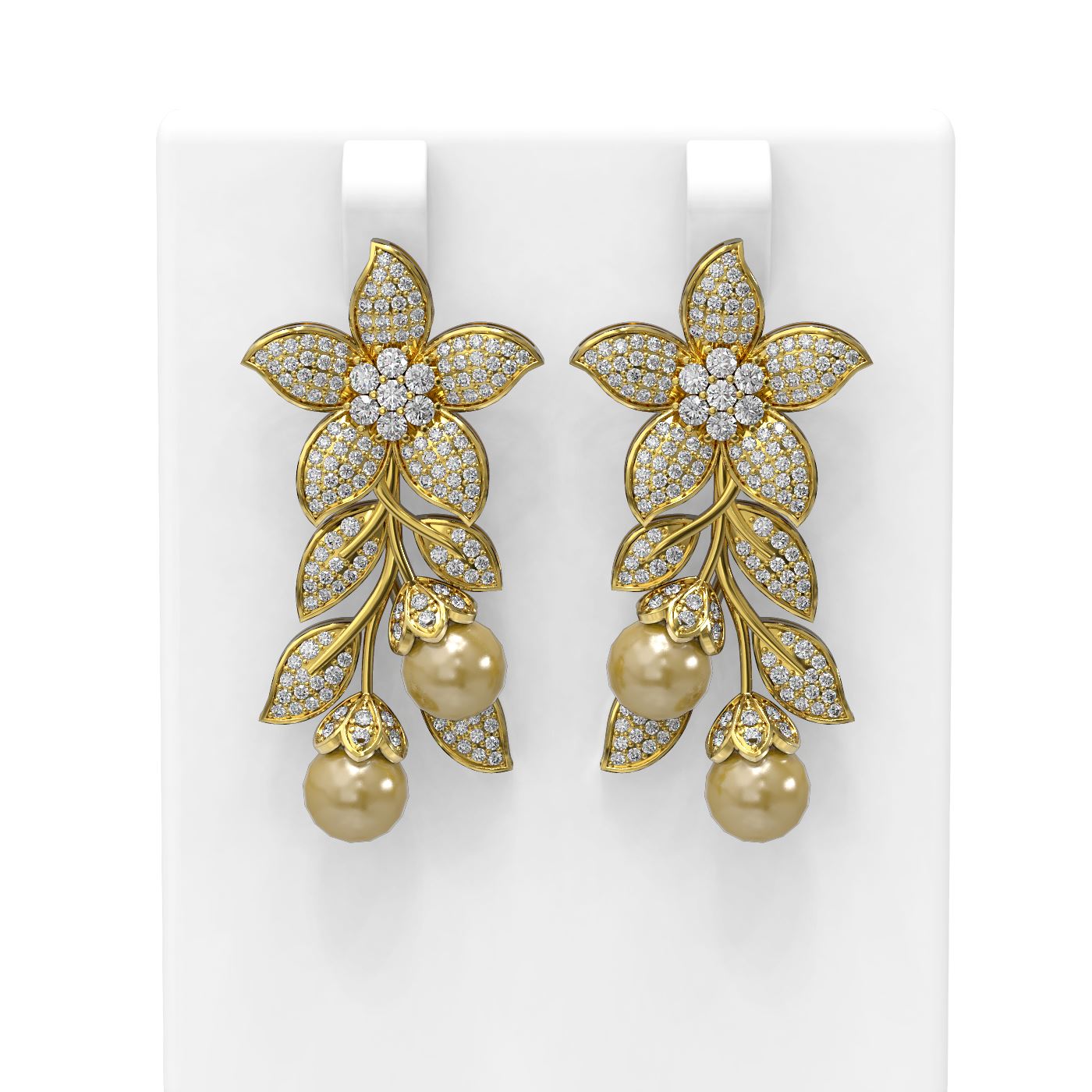 SKU: 54877 ---- 3.05 ctw Diamond & Pearl Earrings 18K Yellow Gold