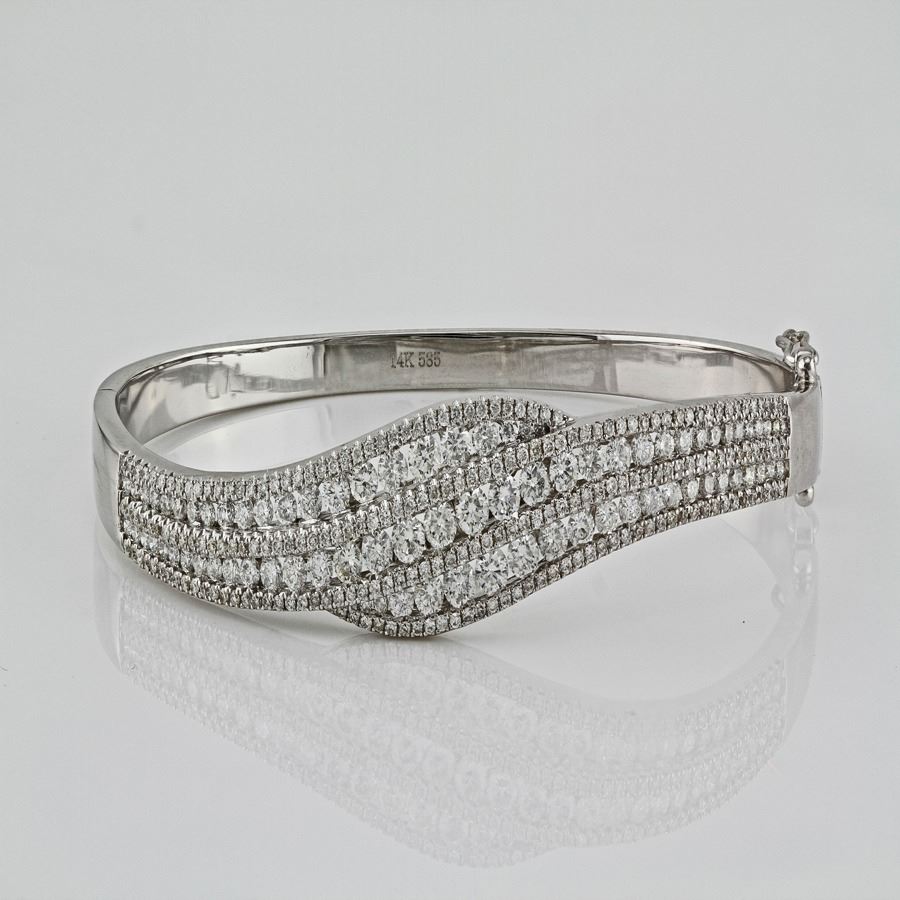 3.05 ctw F, SI2-I1 Channel Pave Setting Diamond Bangle Bracelet 14K White Gold 7"
