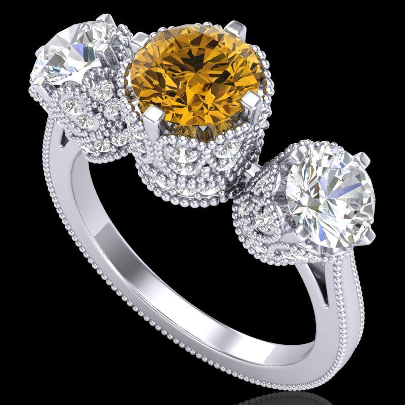 3.06 CTW Intense Fancy Yellow Diamond Art Deco 3 Stone Ring 18K White Gold ---- Luxury Designer Brand 3 stone ring Appraised Retail Price at $23,650 ---- SKU Number US37392 18k White gold 3 stone ring Size is 7, 3 stone ring measuring approx. Uniform, weighing in total approx. 9 grams. Made in the USA and is stamped 18k, Main stone 1.00 carat total weight containing 1 pieces of Intense Fancy Yellow color with SI quality Round shape cut Diamond , Stone #2 1.06 carat total weight containing 2 pieces of H-I color with VS/SI quality Round shape cut