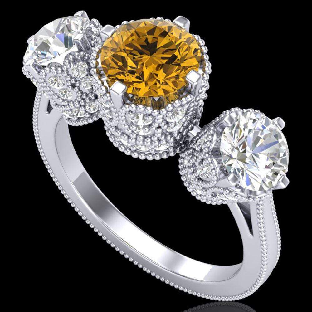 REF-390H9R - SKU: 37392 ---- 3.06 ctw Intense Fancy Yellow Diamond Art Deco Ring 18k White Gold