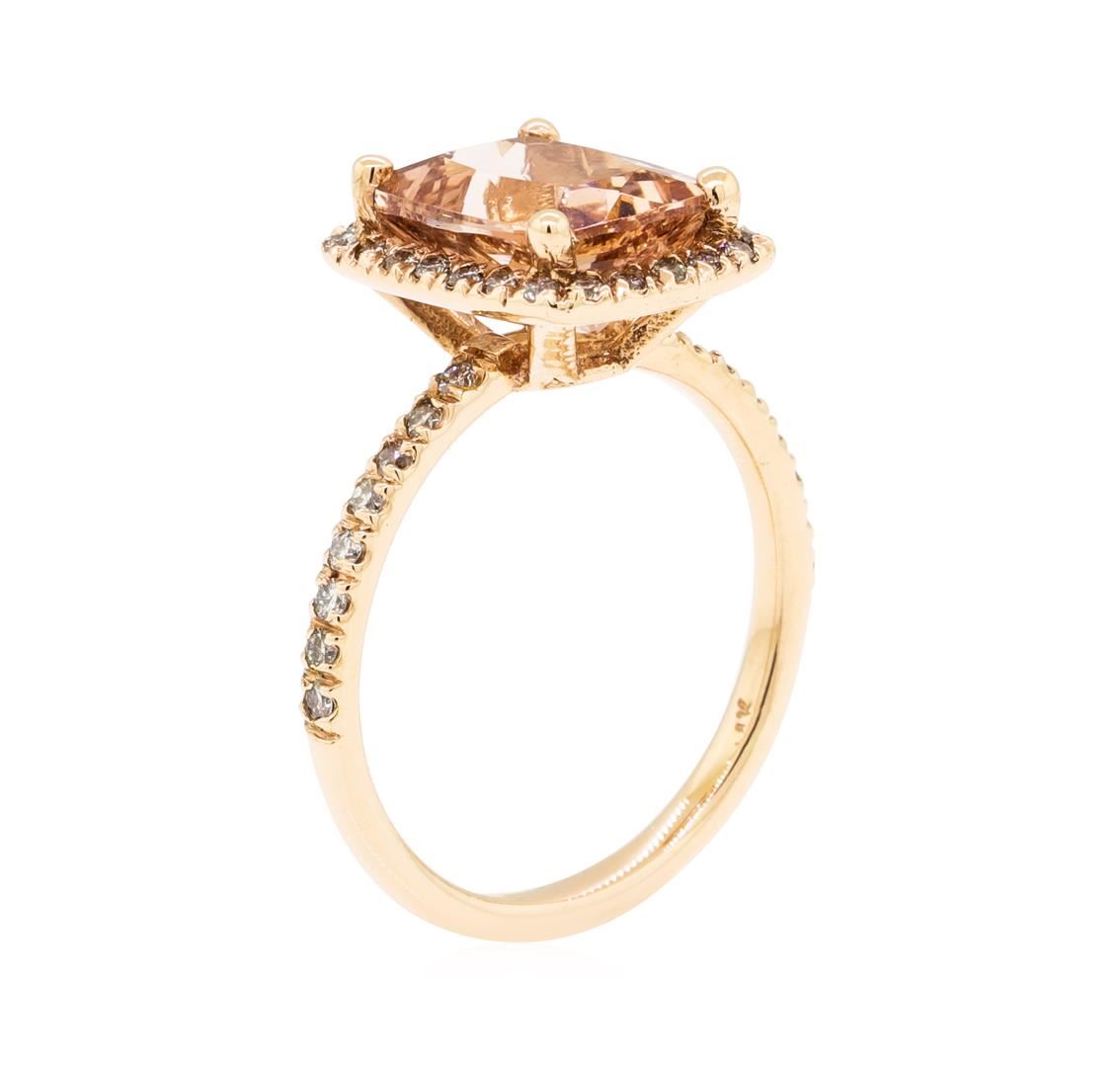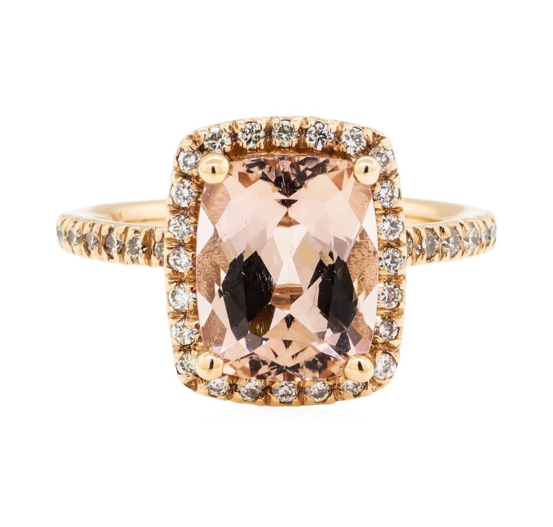 One lady's ring featuring: 14KT rose gold weighing 3.6 grams containing one morganite weighing 3.06ct and diamonds weighing 0.37ctw.