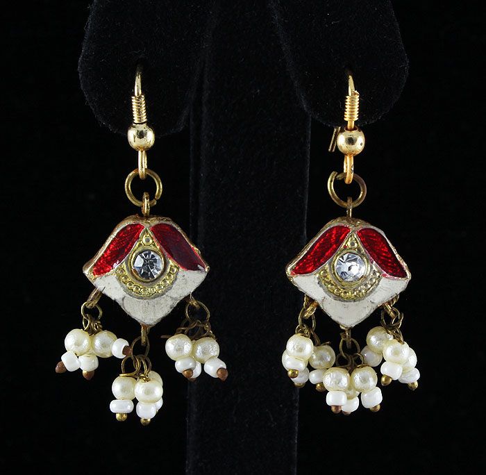 3.06GRAM INDIAN HANDMADE LAKH FASHION EARRING **|**|** Weight(g): 3.06 ; Metal: SILVER PLATEDLAKH ; Length: 1.7 INCHES ; MSRP: $100