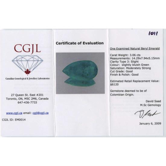 Fabulous stone hard to capture in photos due to depth of color; with gemologist appraisal card; typical emerald clarity SI2 and well colored