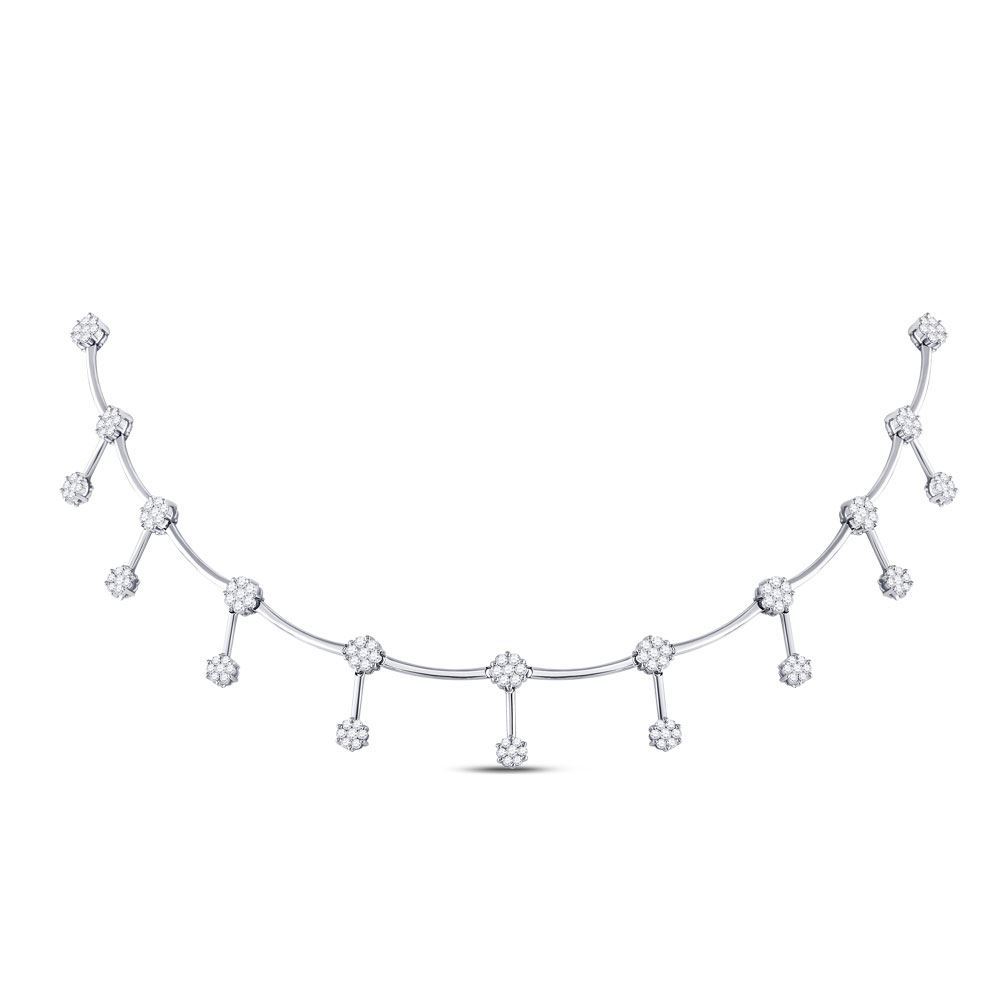 3.07 CTW Diamond Flower Cluster Necklace 14kt White Gold - SKU: GD14277