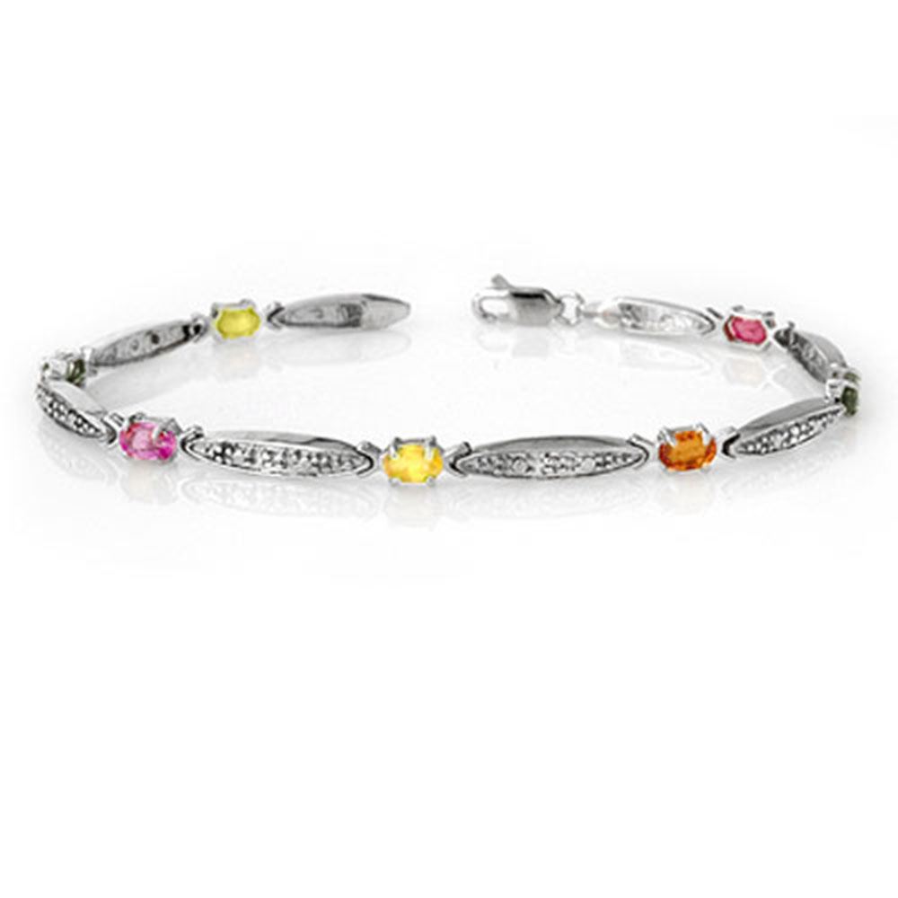 REF-36K6Y - SKU: 13853 ---- 3.07 ctw Multi-Sapphire & Diamond Bracelet 10k White Gold