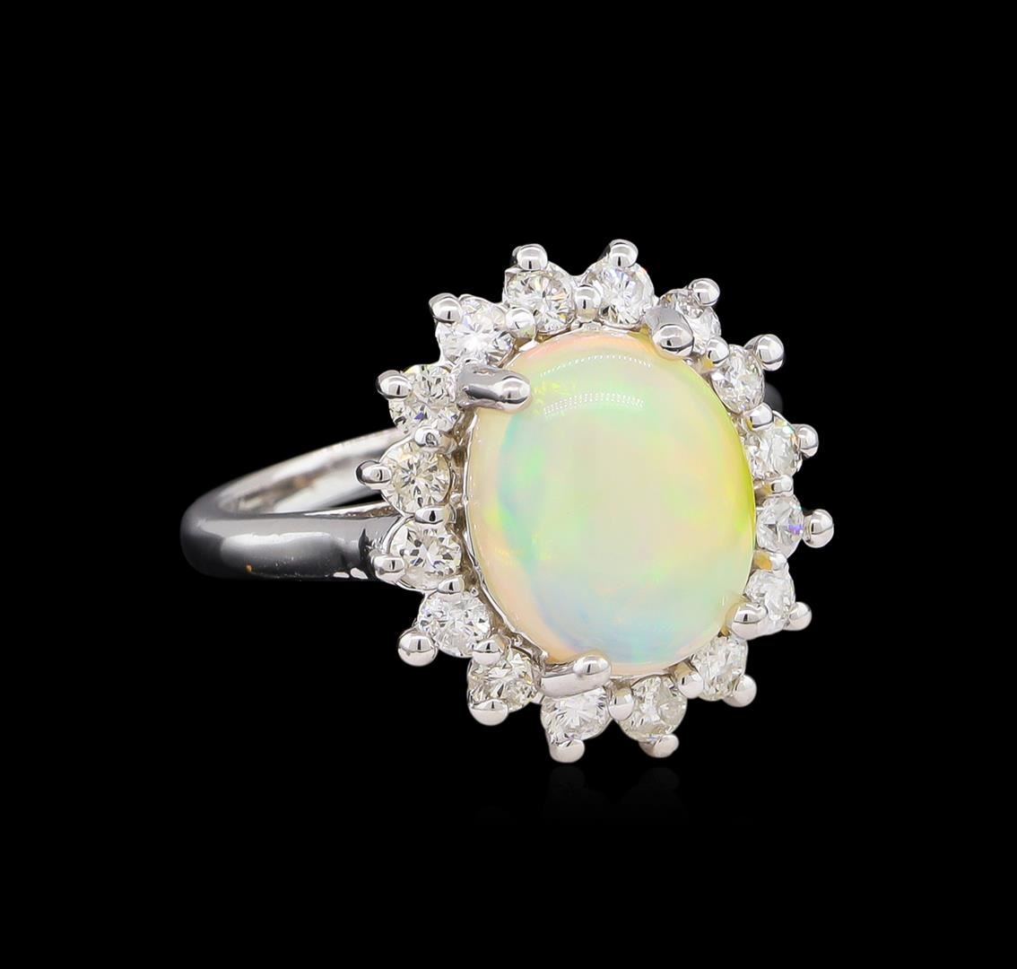 One ring featuring: 14KT white gold weighing 4.86 grams containing one opal with a total weight of 3.07ct and side diamonds with a total weight of 0.78ct.