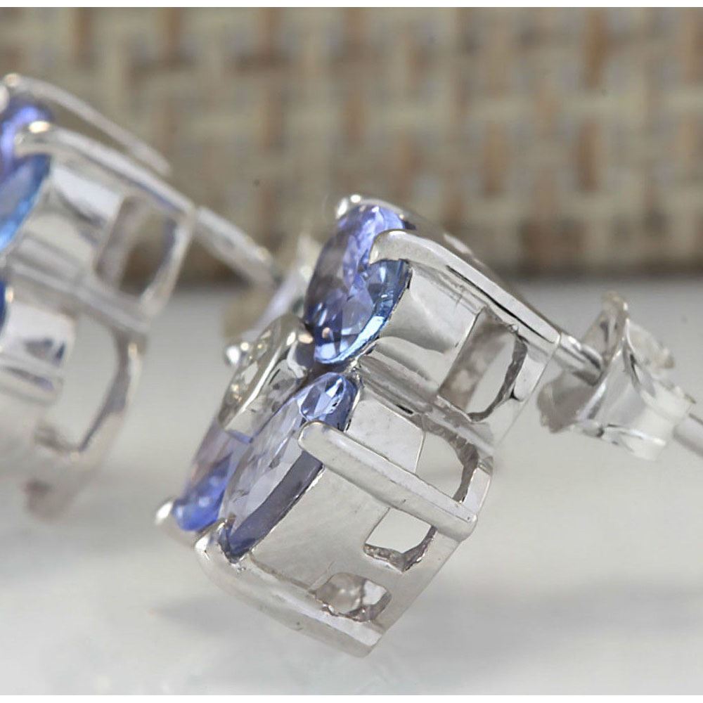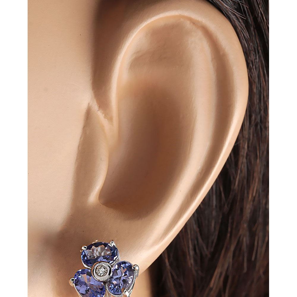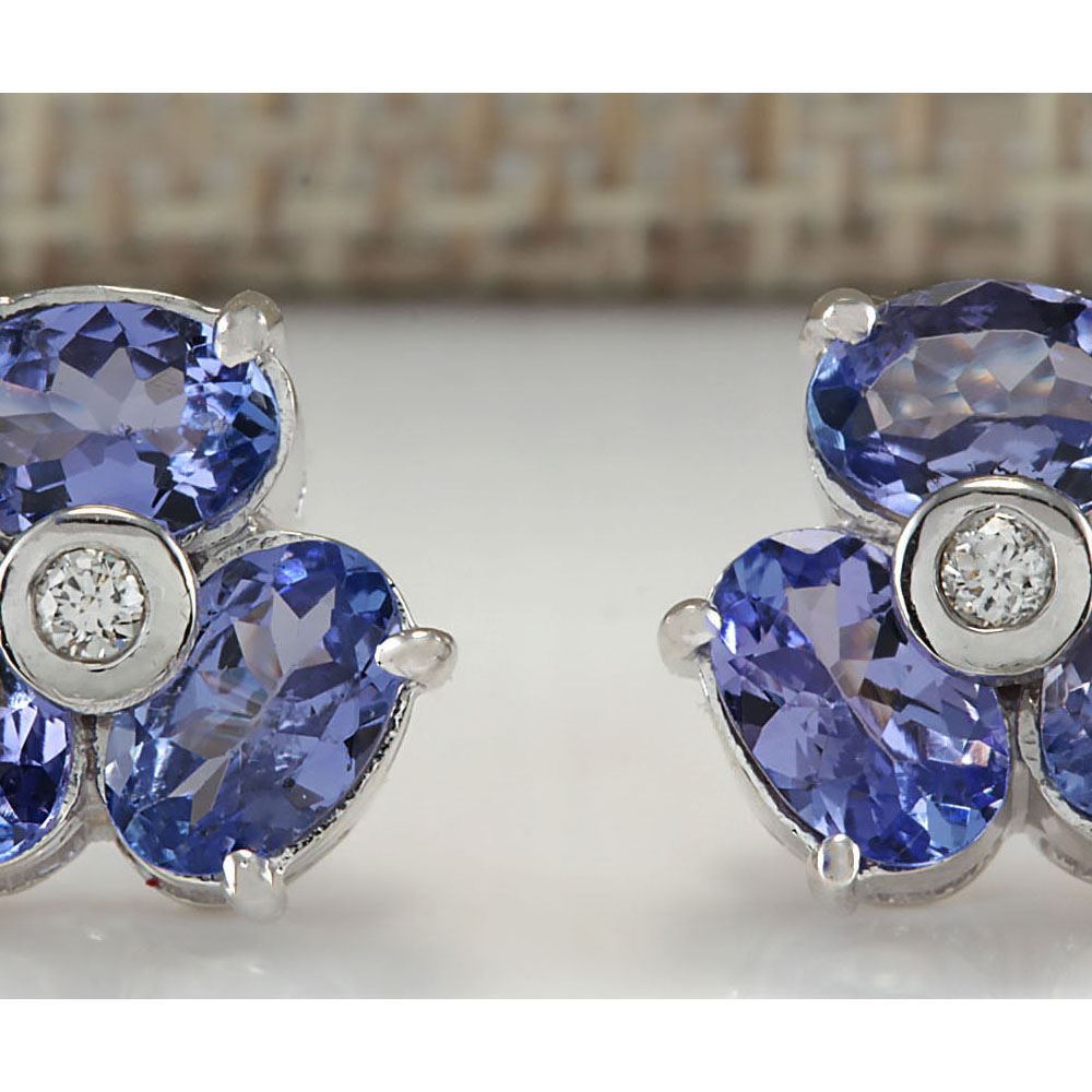 3.08 CTW Natural Tanzanite And Diamond Earrings 18K Solid White Gold