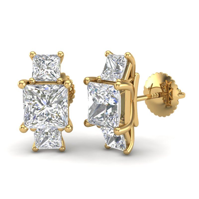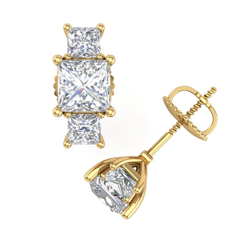 REF-668M2H -37201 ---- 3.08 CTW Princess VS/SI Diamond Art Deco Stud Earrings 18K Yellow Gold ---- Luxury Designer Brand Earring Appraised at $37,800 Certificate Number US37201  18k Yellow gold,  Earring Size is Larger, Earring measuring approx. Uniform, weighing in total approx. 4.5 grams. Made in the USA and is stamped 18k, Main stone 2 carat total weight containing 2 pieces of H-J color with VS/SI quality Princess shape cut Diamond , Stone #2 1.08 carat total weight containing 4 pieces of H-I color with  VS/SI quality Princess shape cut Diamond