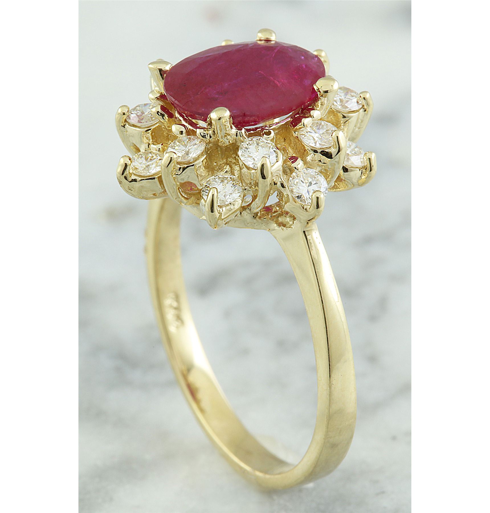 3.08 CTW Ruby 18K Yellow Gold Diamond Ring