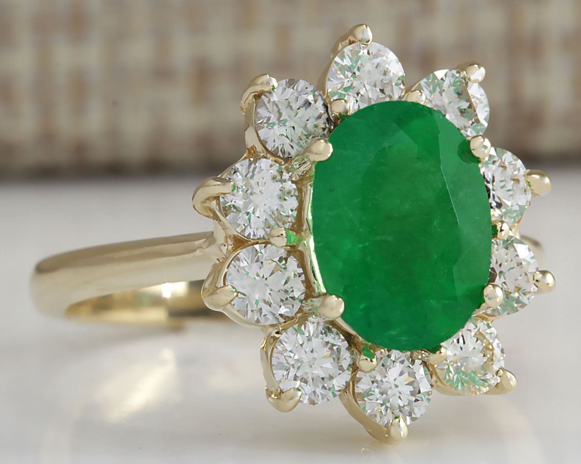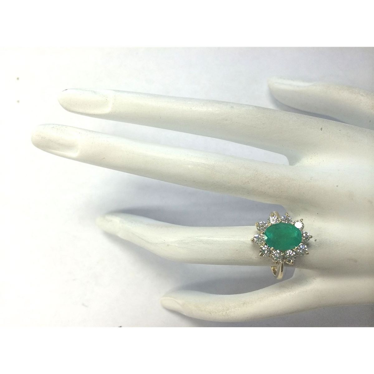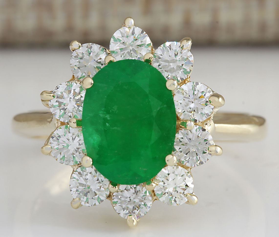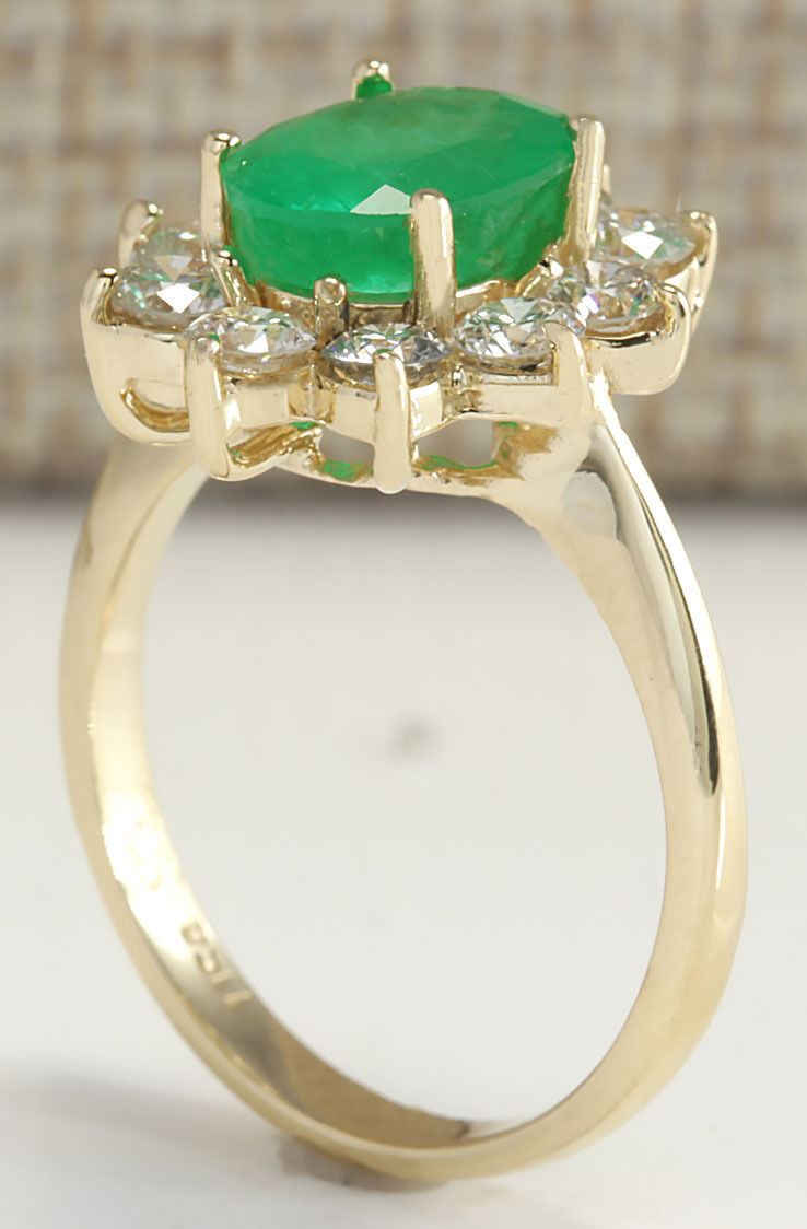 Stamped: 14K Ring Size: 6.5 Total Ring Weight: 4.5 Grams Diamond Weight: Total natural diamond weight is 1.15carat. SI1-SI2 clarity / G-H color Gemstone Weight: Total Natural Colombian Emerald Weight is 1.93ctw (Measures: 9.25x7.20mm) High End Gemstone Face Measures: 15.80x13.80mm Main stone color: Green [SKU:702890]