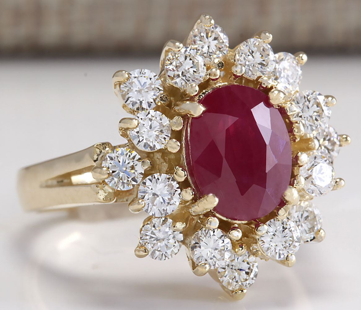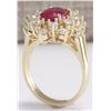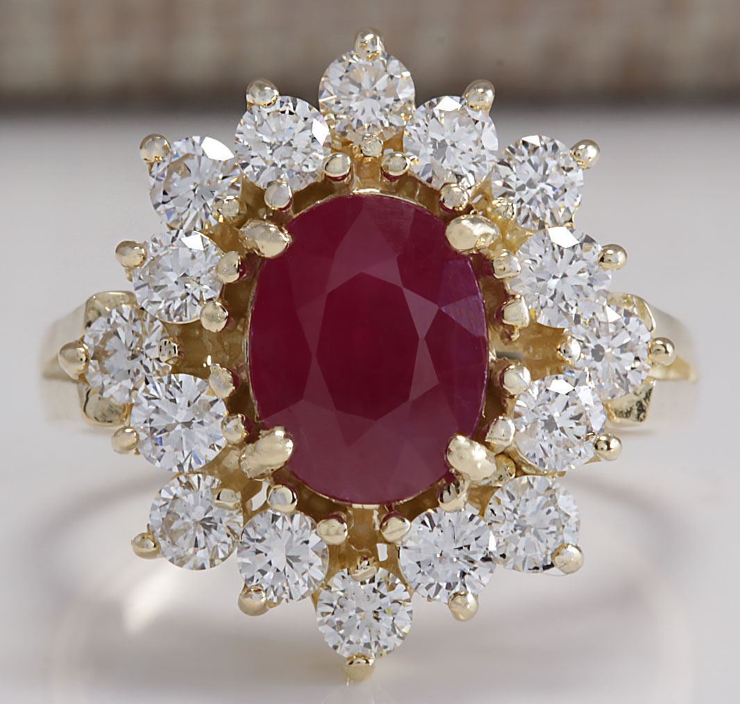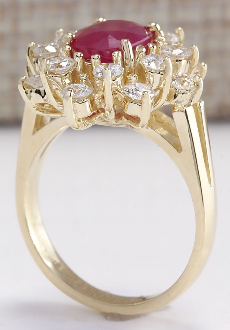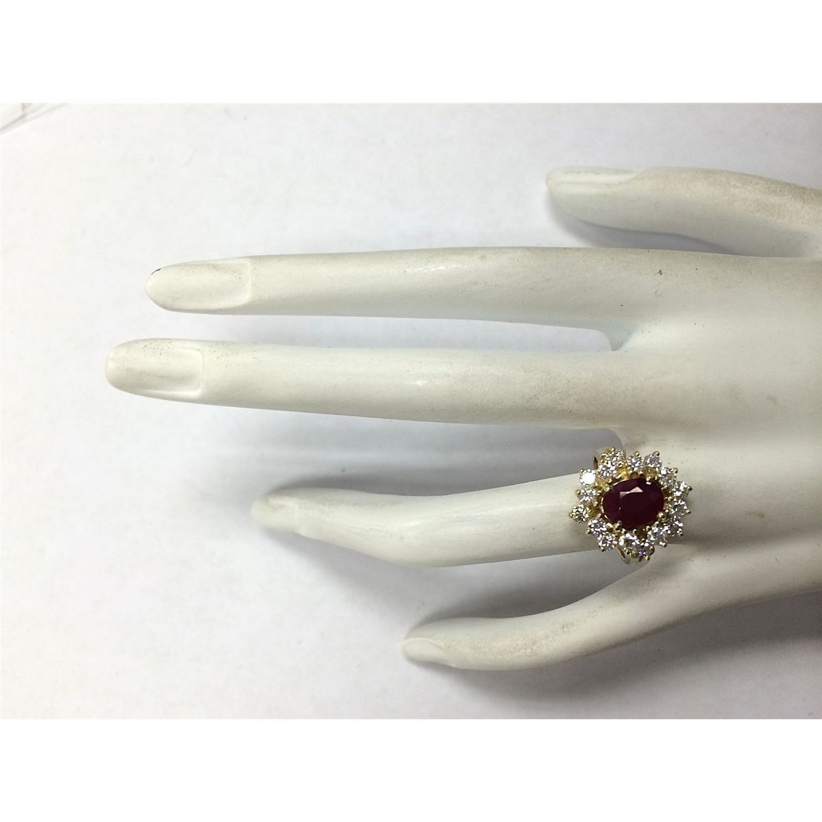 Stamped: 14K Ring Size: 5 Total Ring Weight: 5 Grams Diamond Weight: Total natural diamond weight is 1.00carat. SI1-SI2 clarity / G-H color Gemstone Weight: Total Natural Ruby Weight is 2.08ctw (Measures: 8.06x6.21mm) (No glass or led filling , heated only african ruby) Face Measures: 17.17x16.20mm Main stone color: Red [SKU:702889]