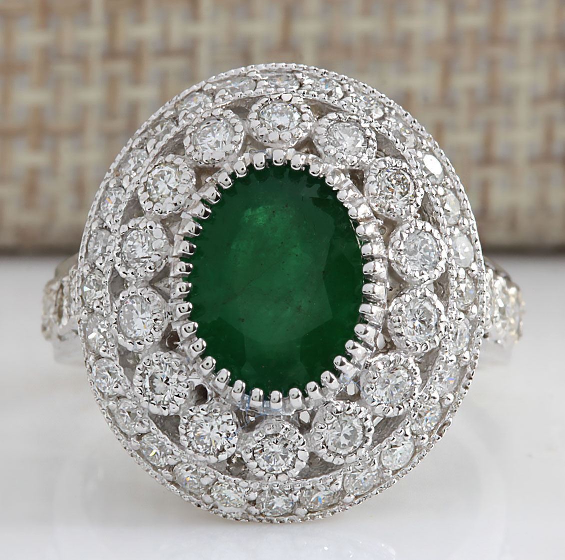 3.09 CTW Natural Emerald And Diamond Ring In 14K White Gold