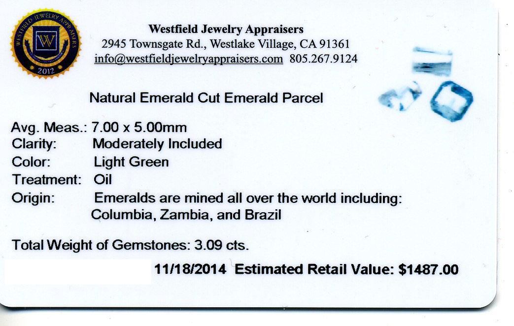 3.09cts. Natural Emerald Cut Emerald Parcel Westfield Appraised at $1,487.00.