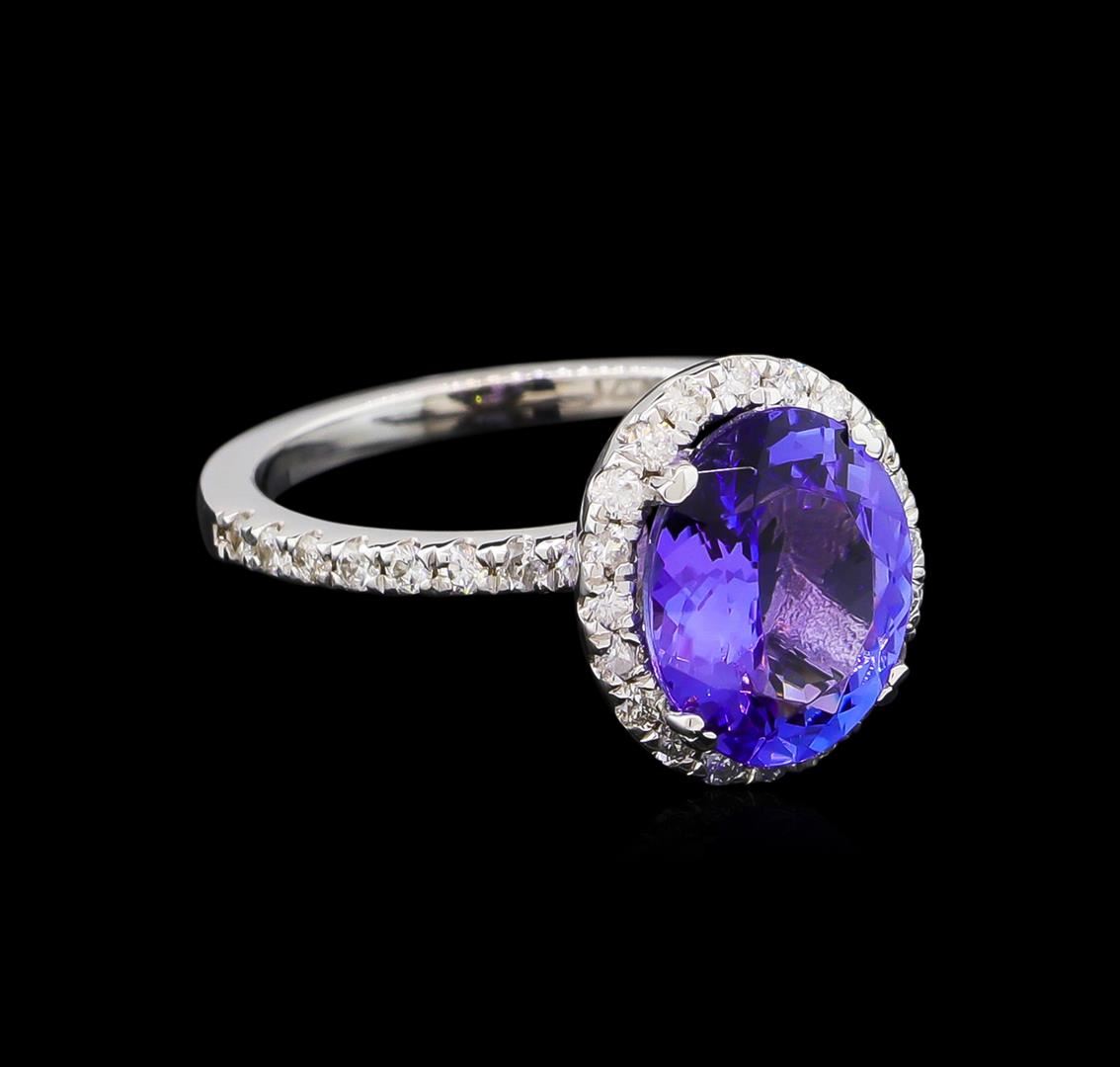One ring featuring: 14KT white gold weighing 3.02 grams containing one tanzanite with a total weight of 3.09ct and side diamonds with a total weight of 0.46ct.