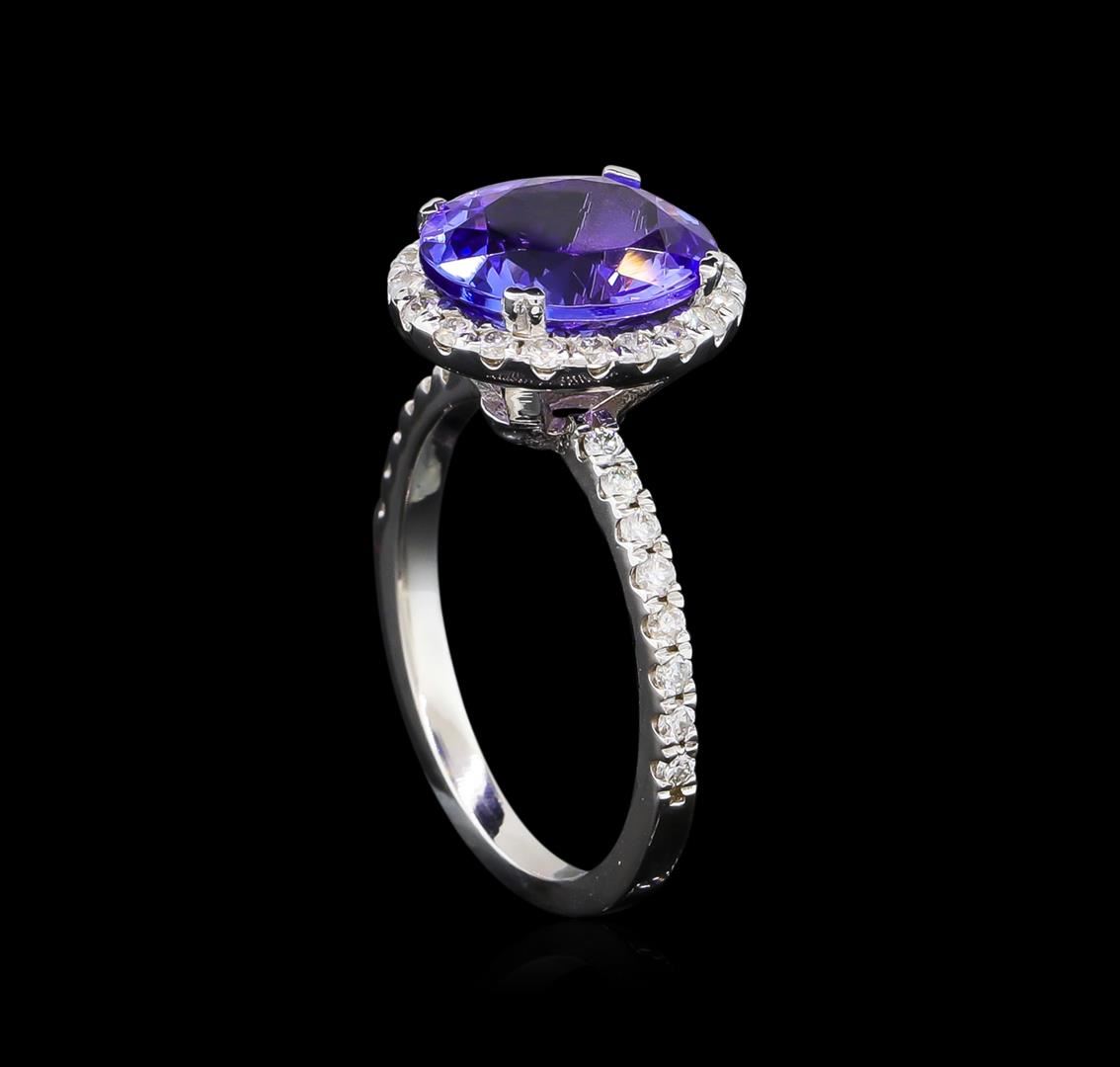 One ring featuring: 14KT white gold weighing 3.02 grams containing one tanzanite with a total weight of 3.09ct and side diamonds with a total weight of 0.46ct.