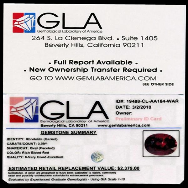 Excellent clear blood red specimen oval cut; lab quality evaluation 8; typical treatment likely; Gem Guide wholesale $216-$309; full retail appraisal $2379; full lab evaluation available