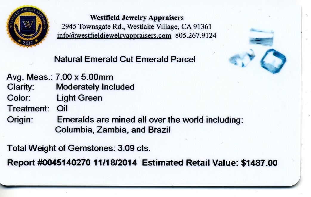 3.09cts. Natural Emerald Cut Emerald Parcel Westfield Appraised at $1,487.00.