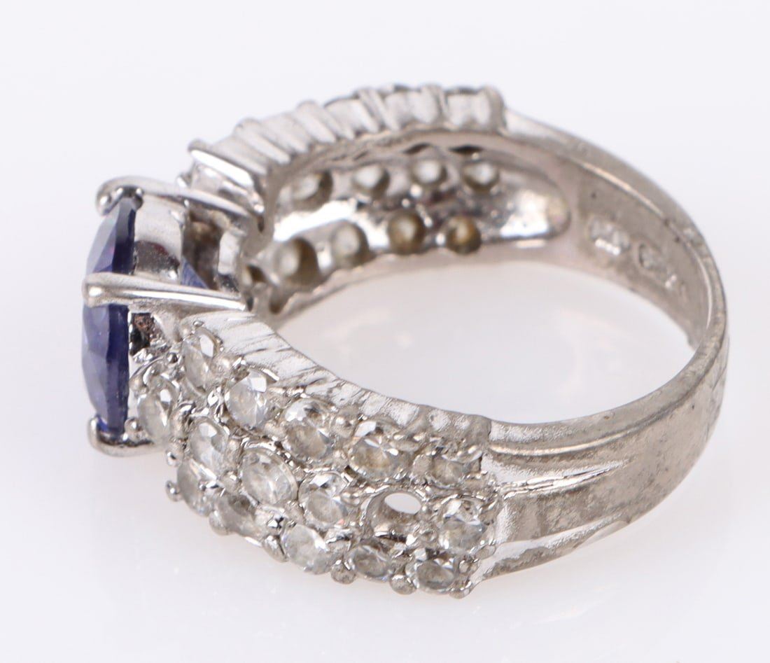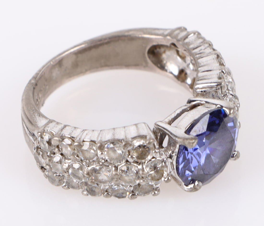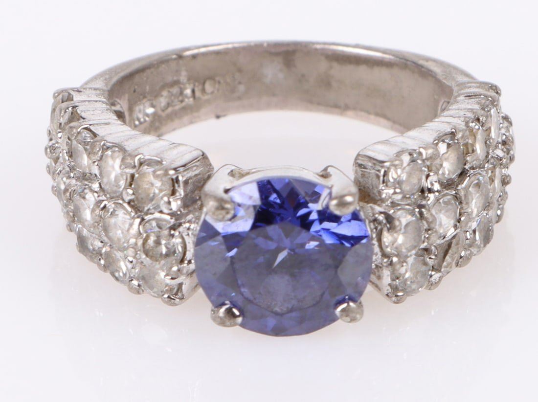 3.0ct tanzanite sterling silver ladies ring with white CZ stones.