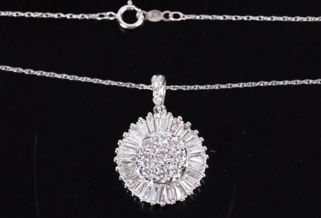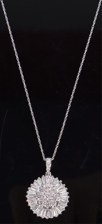 3.0CTW VS2-SI1 diamond 14k white gold ladies necklace with channel and round diamonds.