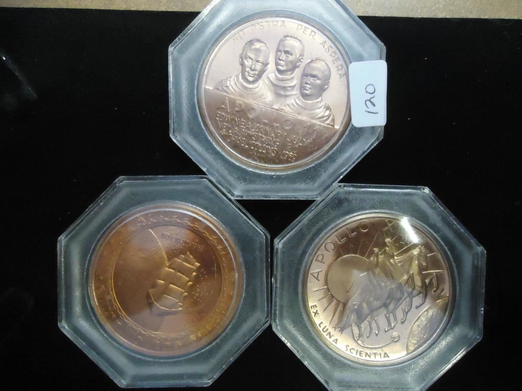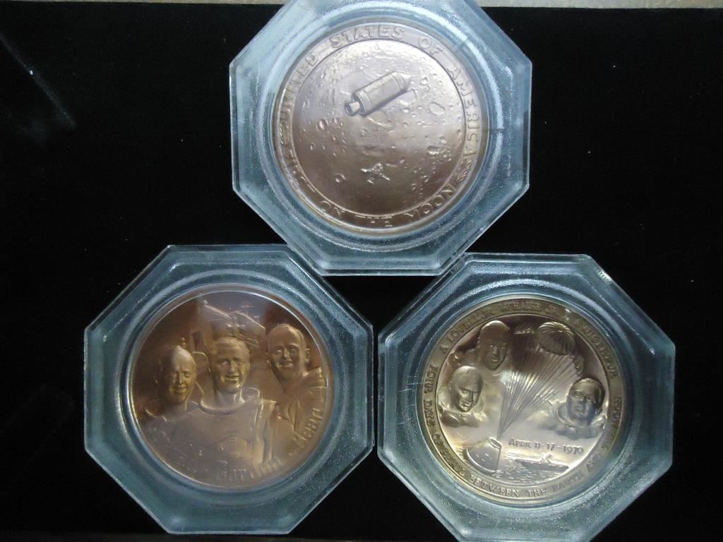 3-1 1/2" BRONZE 1995 SPACE MEDALS APOLLO 11, 12,13