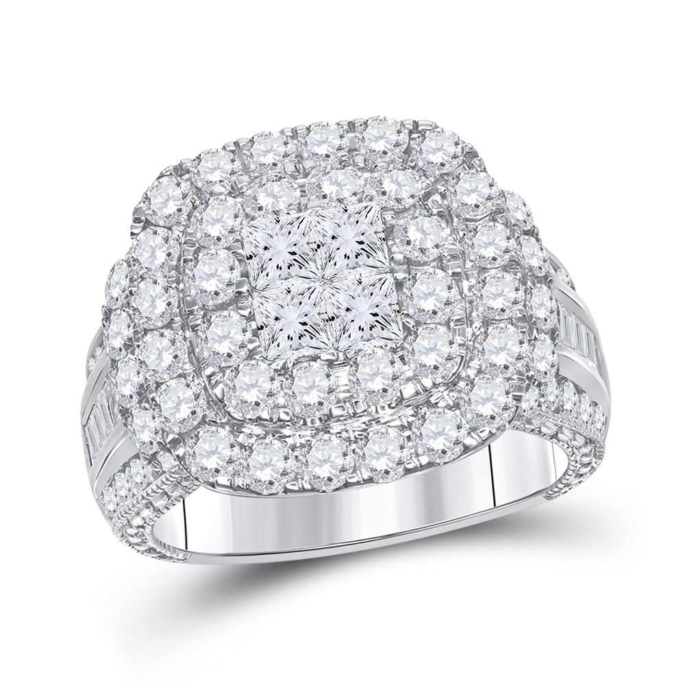 14kt White Gold Womens Princess Diamond Cluster Bridal Wedding Engagement Ring 3-1/2 Cttw