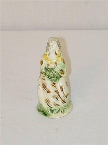 3 1/2" EARLY PRATTWARE FIGURE OF GIRL SEATED W/ FLOWERS - SMALL BASE RIM CHIP;