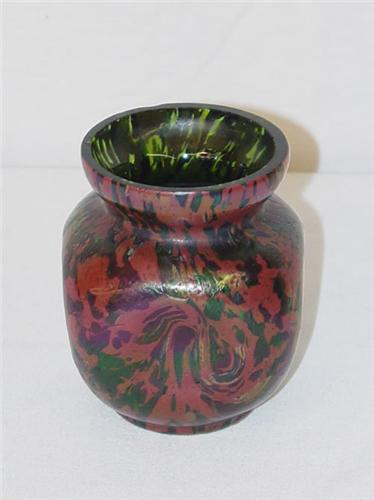 3 1/2" LOETZ TYPE GREEN & RED VASE W/ PINCHED DECORATION - SMALL TOP RIM CHIP