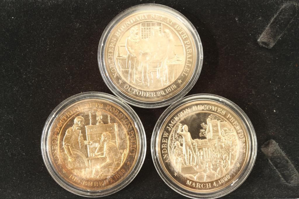 FRANKLIN MINT1818 NORTHERN BOUNDRY SET AT 49TH PARALLEL, 1823 MONROE DOCTRINE SET FOREIGN POLICY AND 1829 ANDREW JACKSON BECOMES PRESIDENT