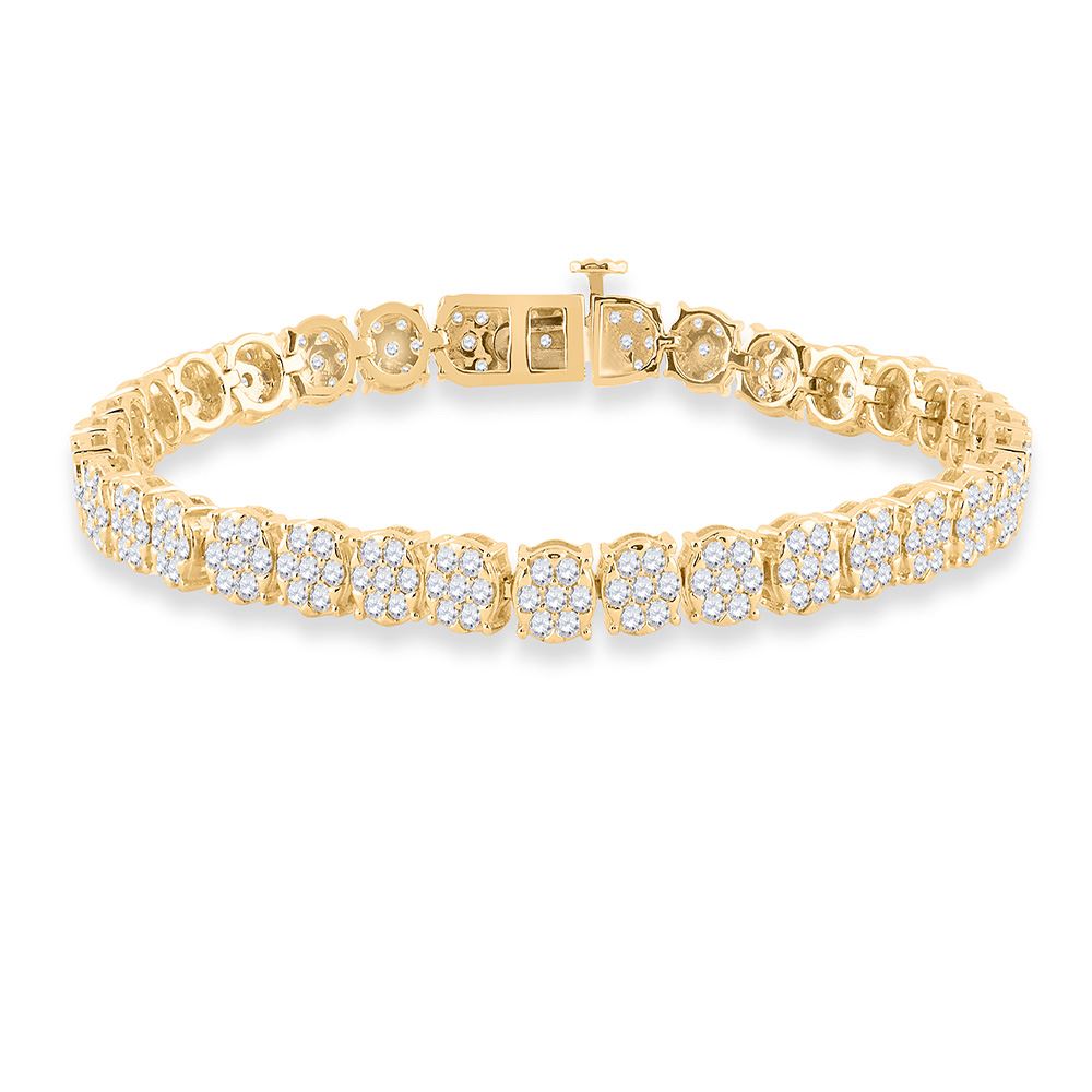 REF-296N6A - 3 & 1/3 CTW Womens Round Diamond Cluster Tennis Bracelet 14kt Yellow Gold - REF-296N6A