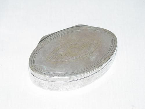 3 1/4" CONTINENTAL HALLMARKED SILVER SNUFF BOX W/ ENGRAVED FLORAL & VINE DECORATION ON LID - TARNISH & NORMAL WEAR