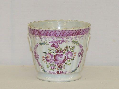 3 1/4" DECORATED SOFT PASTE (PEARLWARE) OPEN SUGAR BOWL-JARDINERE FORM W/ APPLIED LOOP HANDLES - STAINS & MINOR GLAZE WEAR
